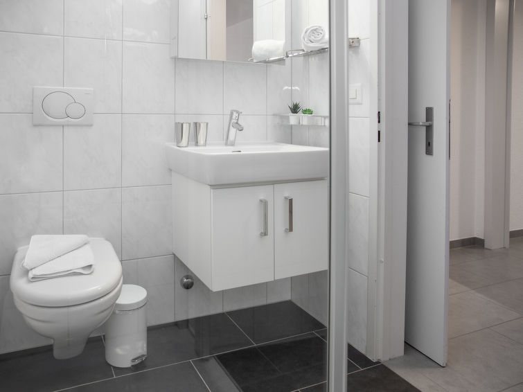 "Apt. Hu", 3 rom leilighet 112 m2 i 1st etasje. Romlig og lys, moderne og smakfullt møbler: stue/spisestue med, 1 dobbel sovesoffa (140 cm, lengde 180 cm), kabel-TV, flatskjerms TV og radio. 1 rom med, 1 dobbeltseng (2 x 90 cm, lengde 200 cm), bad/WC. 1 rom med 2 senger (90 cm lengde 200 cm), dusj/WC. Kjøkken (stekeovn, oppvaskmaskin, 4 keramiske kokeplater, brødrister, vannkoker, mikrobølgeovn, elektrisk kaffemaskin, Internet(Nespresso), ekstra). 2 balkonger. Vakker utsikt av fjellene. Fasiliteter: hårføner. Internett (trådløs LAN [WLAN], gratis). Vennligst merk: røykfri bolig.
