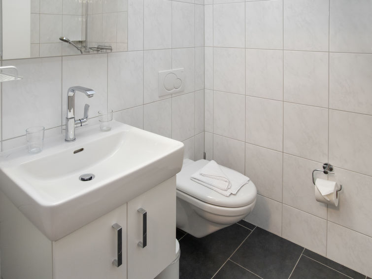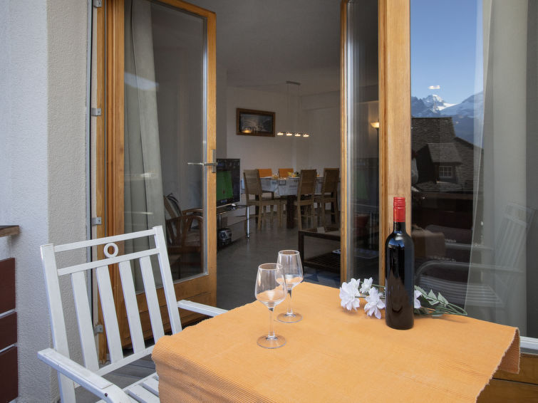 Leilighetshus "Eiger". I sentrum av Wengen, i en sentrale posisjon. I huset: restaurant, heis, sentralvarme. Innkjøpsservis mulig før ankomst. Trapper (10 trinn) til hbrukt. Butikk, supermarked 50 m, restaurant, bakeri 10 m.minutters gange til sentrum 1, togstasjon "Wengen" 20 m, utendørs svømmebasseng 500 m. Kabelbane, skisportenanlegg 50 m, lekeplass 100 m. Vennligst merk: bilfritt ferieområde. Ankomst via fjellheis. Det er flere lignende leiligheter i samme hus.