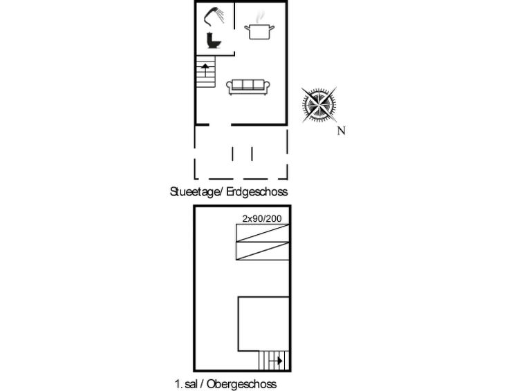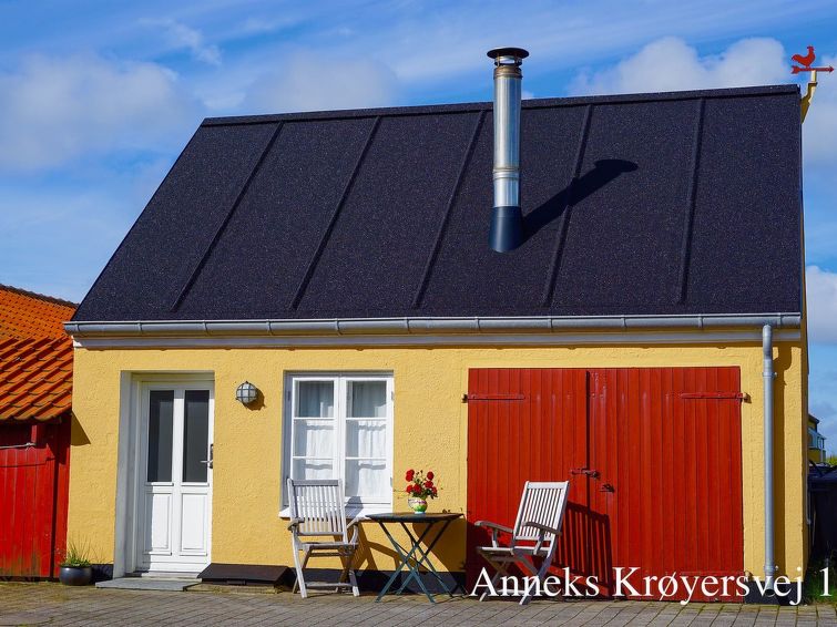 "Elle" - 50m from the sea in NW Jutland", 1 rom leilighet 35 m2. Passer for 2 voksne. Stue med, TV. Kjøkken (stekeovn, 4 induksjonskomfyr, frys). Dusj/WC. øverste etasje: 1 rom med, 1 dobbeltseng. Terrasse 50 m2. Fasiliteter: vaskemaskin. Internett (trådløs LAN [WLAN]). Parkeringsplass ved hbrukt. Vennligst merk: røykfri bolig.