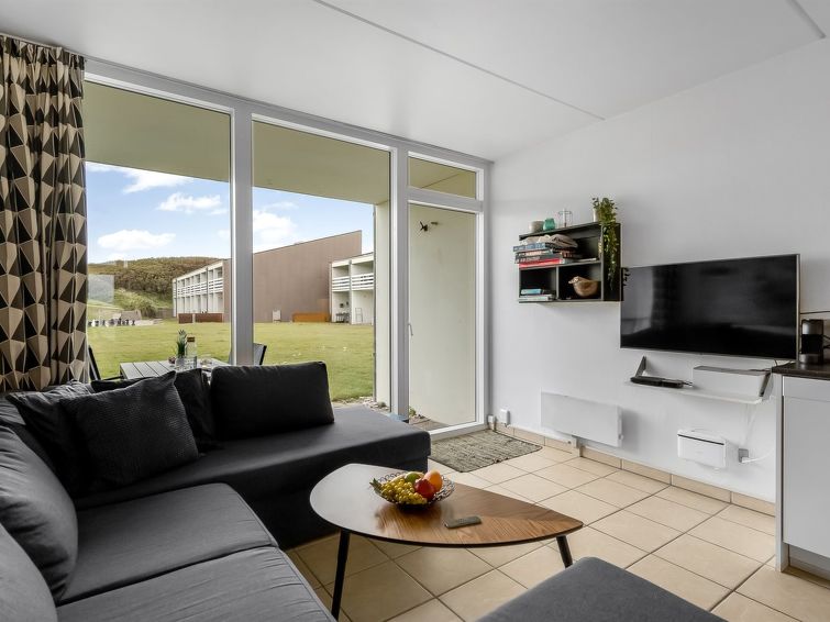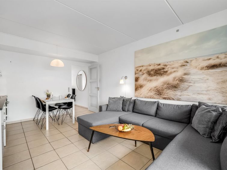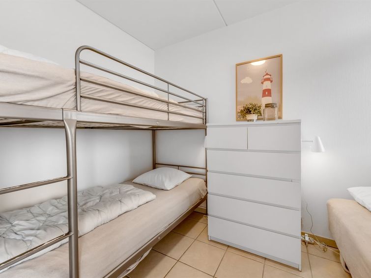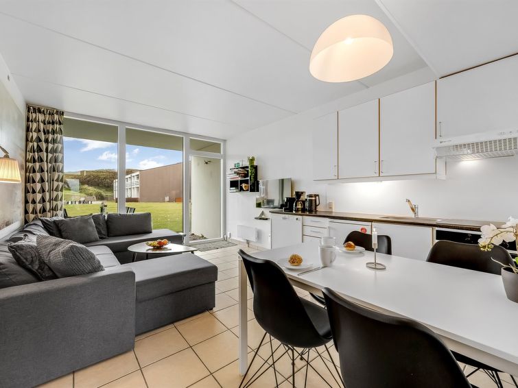 "Ellyn" - 250m from the sea in Western Jutland", 3 rom leilighet 48 m2. Passer for 3 voksne. Stue med, 1 dobbel sovesoffa og TV. 1 rom med, 1 dobbeltseng. 1 rom med 1 seng og 1 x 2 køysenger. Kjøkken (stekeovn, oppvaskmaskin, 4 keramiske kokeplater, frys). Dusj/WC. Fasiliteter: Internett (trådløs LAN [WLAN]). Parkeringsplass ved hbrukt. Vennligst merk: røykfri bolig. Max kjæledyr / hund tillatt 1 kjæledyr / hund tillatt.