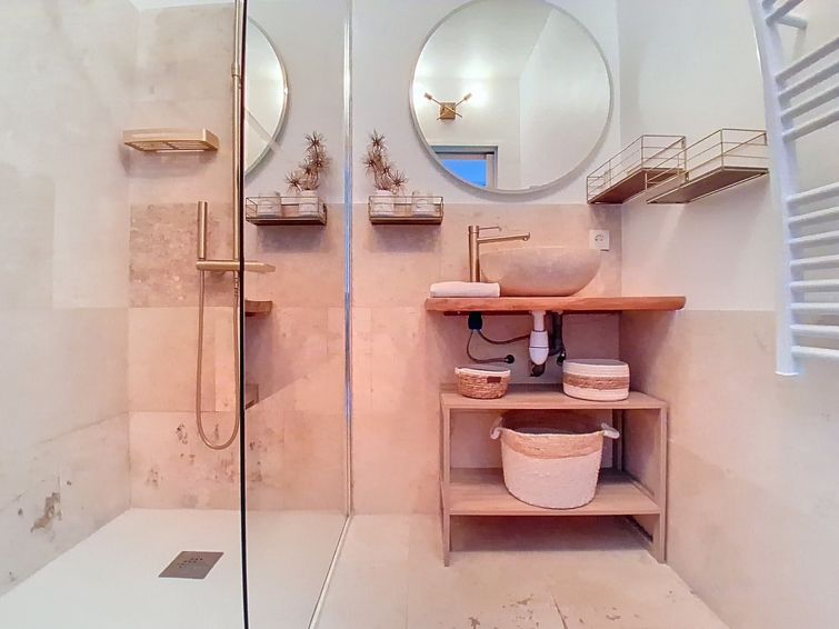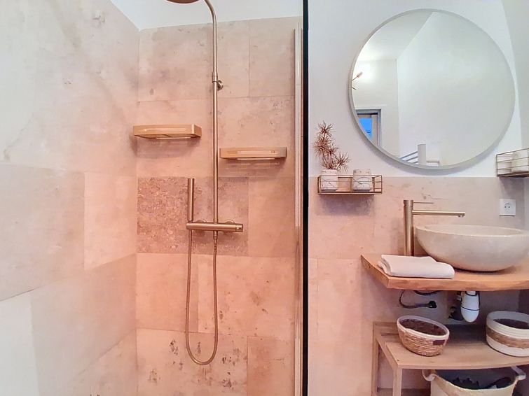 3 rom leilighet 60 m2 i 1st etasje. Komfortabelt og moderne møbler: stue/spisestue med, 1 sovesoffa (140 cm, lengde 190 cm), TV (flatskjerms TV). Utgang til terrassen. 1 rom med 2 senger (90 cm lengde 190 cm). 1 rom med, 1 dobbeltseng (1 x 140 cm, lengde 190 cm). Utgang til terrassen. Kjøkken (stekeovn, oppvaskmaskin, 3 keramiske kokeplater, brødrister, vannkoker, mikrobølgeovn, frys, elektrisk kaffemaskin). Utgang til balkongen. Dusj, sep. WC. Oppvarming. Terrasse 15 m2, beliggenhet mot sør. Terrassemøbler. Delvis utsikt av havet. Fasiliteter: vaskemaskin, strykejern, hårføner. Internett (trådløs LAN [WLAN], gratis). Parkeringsplass plass nr 3 (1 Bil). Vennligst merk: røykfri bolig. Kjæledyr / hund tillatt 1 kjæledyr / hund tillatt. Røykvarsler. Tilbud fra en privatperson i henhold til art. 155, IV av CGI. 06027027974HT