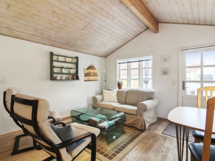 "Fritzy" - 75m from the sea in NW Jutland", 2 rom leilighet 50 m2. Passer for 4 voksne. Stue med, 1 x 2 køysenger, TV, radio, CD-spiller og DVD. 1 rom med, 1 dobbeltseng. Kjøkken (stekeovn, oppvaskmaskin, 4 induksjonskomfyr, mikrobølgeovn, frys). Dusj/WC. Terrasse 7 m2. Fasiliteter: vaskemaskin, tørketrommel, høy barnestol barneseng (ekstra). Internett (trådløs LAN [WLAN]). Vennligst merk: røykfri bolig.