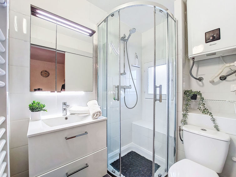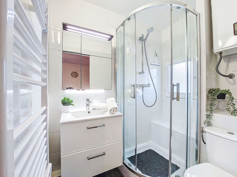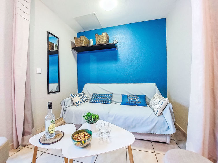 2 rom leilighet 27 m2 i 2nd etasje. Stue/spisestue med, 1 sovesoffa (140 cm, lengde 190 cm), TV (flatskjerms TV), elektrisk oppvarming. Utgang til terrassen. 1 rom med, 1 dobbeltseng (1 x 140 cm, lengde 190 cm). Kjøkkenkrok (4 keramiske kokeplater, brødrister, vannkoker, mikrobølgeovn, elektrisk kaffemaskin). Dusj/WC. El-oppvarming. Terrasse 5 m2. Terrassemøbler. Vakker utsikt av havet. Fasiliteter: vaskemaskin, strykejern. Internett (trådløs LAN [WLAN], ekstra). Parkeringsplass. Vennligst merk: røykfri bolig. Røykvarsler.