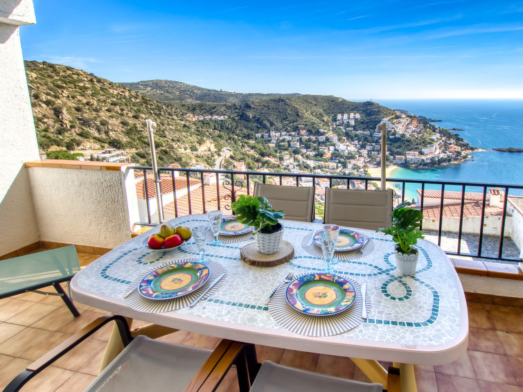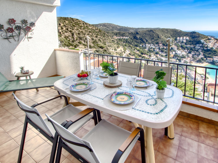 Canyelles Petites 3 km fra Roses: Leilighetshus "Garbinell", med 3 etasjer. 1.6 km fra sentrum av Canyelles, 3 km fra sentrum av Roses, i en roligt, solrikt posisjon på toppen av en høyde, 1.6 km fra sjøen, 1.6 km fra stranden, beliggenhet mot sør-vest. Bratt Tilgang med bil hele veien. Parkering, offentlig parkering på veien. Supermarked 1.2 km, restaurant 1.2 km, bar 1.3 km, bakeri 1.2 km, sandstrand "Cala de Canyelles Petites" 1.6 km, stenstrand "Cala Montjoi" 5 km, strand ved klipper "Cap de Creus" 10 km. Sporthavn 1 km, golfbane(15 hull) 14 km, surfeskole 3 km, seileskole 3 km, tennisklubb 4 km, minigolf 4 km, idrettsenter 4 km, turstier fra hbrukt 800 m. Attraksjoner i nærheten: Aqua Park 9 km, Casino y Festival de Perelada 15 km, Campo de Golf Perelada 15 km, Ruinas de Empuries 25 km, Museo Dali Figueres 20 km, Cadaqués 25 km. Vennligst merk: bil anbefales. Eieren godtar ikke noen ungdomsgrupper.