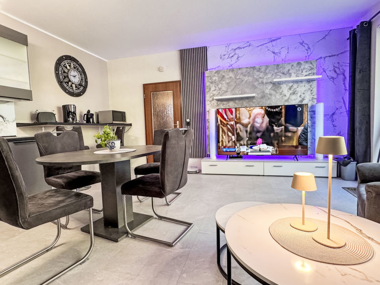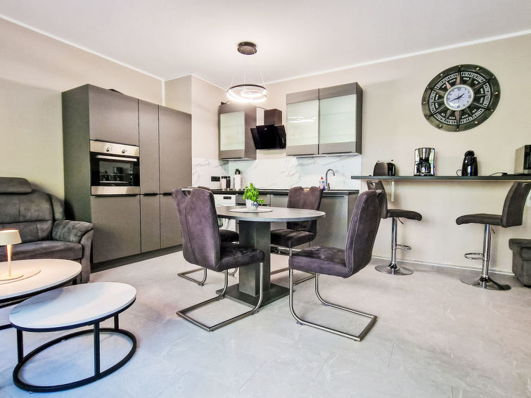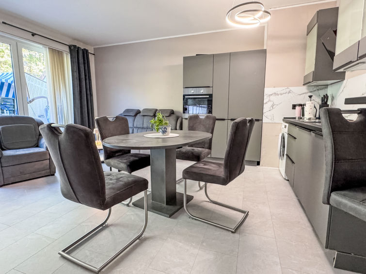 Leilighetshus. 21 leiligheter i residensen. 800 m fra sentrum av Glowe, i utkanten, 8 km fra sentrum av Juliusruh, 16 km fra sentrum av Saßnitz, i et boligområde, 300 m fra sjøen. Fellesbruk: tomt med trær. I huset: trådløst LAN [WLAN], vaskemaskin, tørketrommel (for felles bruk ekstra). Parkering på tomten. Supermarked 600 m, sandstrand 300 m, innendørs pool 6 km. Marina 1 km. Feriehuset kan variere i stue, planløsning, utstyr og møbler.