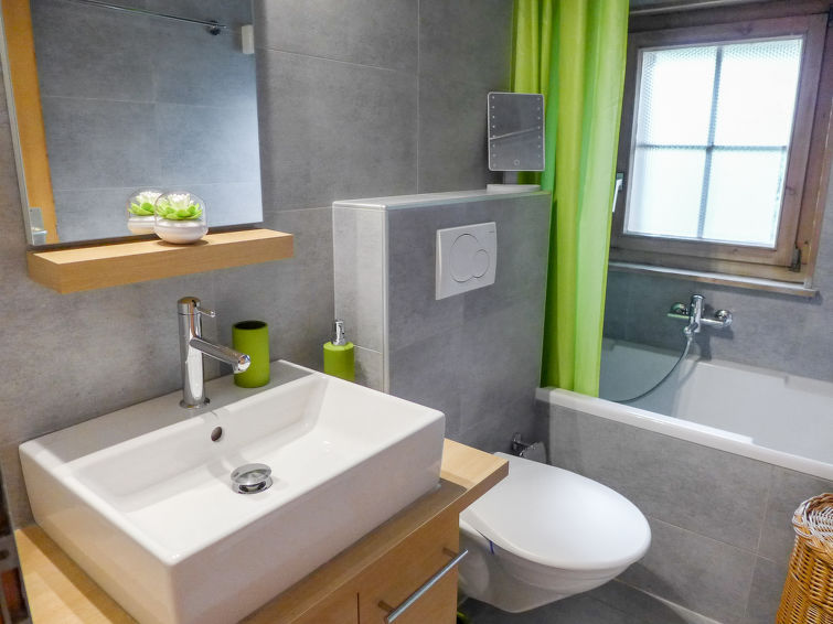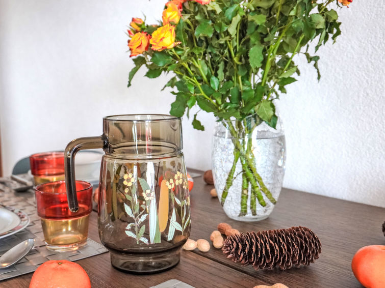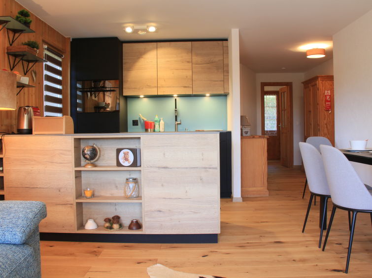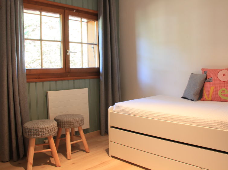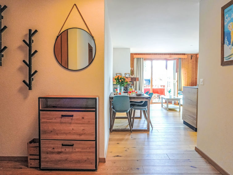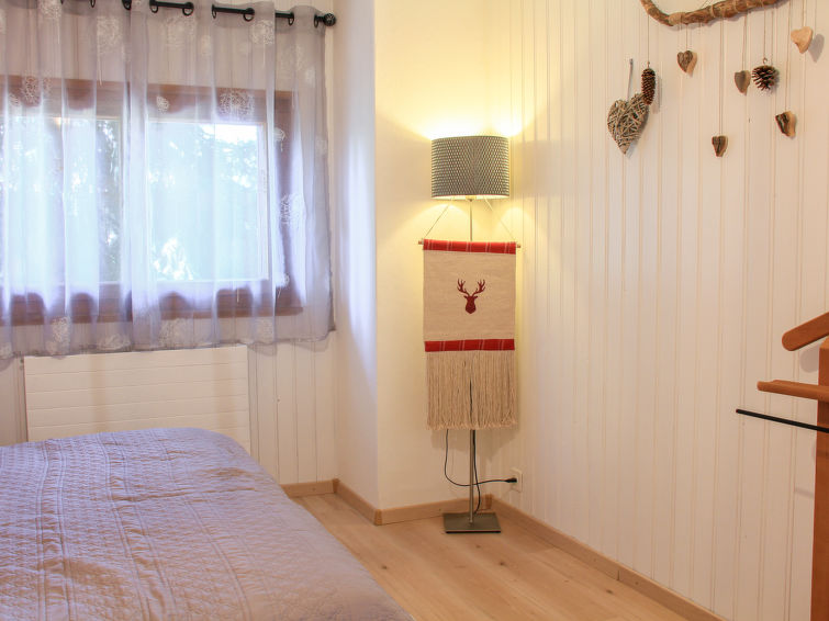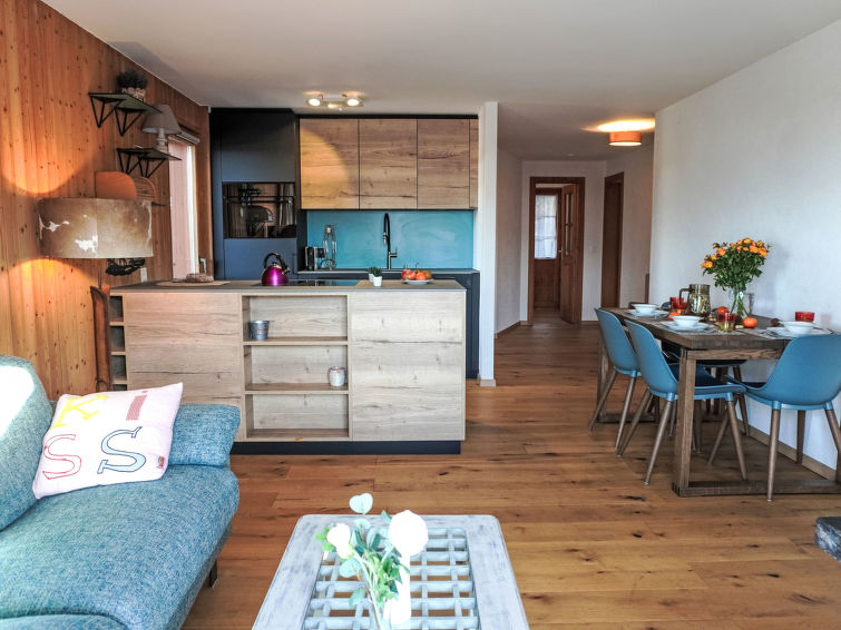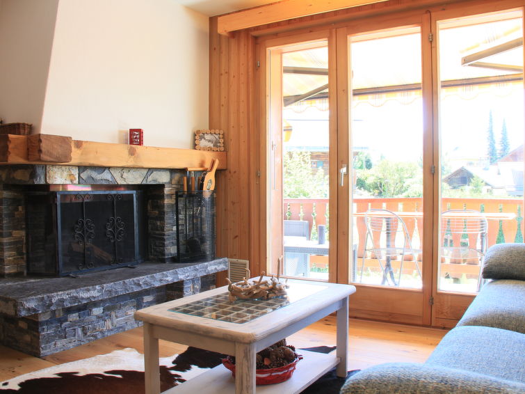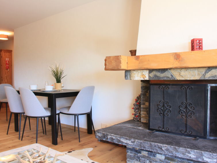 "Goeland n°4", 3 rom leilighet 57 m2 i 2nd etasje, beliggenhet mot sør-vest. Praktiskt og vakkert møbler: stue/spisestue med, åpen peis. Utgang til balkongen, beliggenhet mot sør-vest. 1 rom med, 1 dobbeltseng (1 x 160 cm). 1 rom med, 2 uttrekkbare senger (2 x 90 cm). Åpent kjøkken (stekeovn, oppvaskmaskin, 4 induksjonskomfyr, brødrister, vannkoker, elektrisk kaffemaskin, Internet(NESPRESSO), ekstra, raclettegrill (ost)). Bad/WC. Stor balkong 18 m2, beliggenhet mot sør-vest. Terrassemøbler. Vakker utsikt av fjellene. Fasiliteter: Internett (trådløs LAN [WLAN], gratis). Garasje plass nr 9. Vennligst merk: røykfri bolig. Ingen heis.