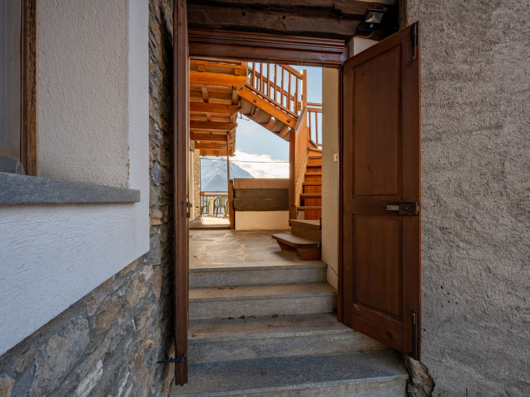 Fin flermannsbolig "Grand Sarriod", 1'470 m.o.h. I det lille tettstedet Grand Sarriod, 4 km fra sentrum av St Nicolas, 21 km fra sentrum av Aosta, i en roligt, solrikt posisjon. I huset: vaskemaskin (for felles bruk), oppvarming kun tilgjengelig fra 15.Okt. - 15.Apr.. Kjettinger nødvendige på vinteren. Offentlig parkering på veien. Restaurant 3 km. Attraksjoner i nærheten: Courmayeur Mont Blanc 33 km. Velkjente skiområder: ovovia Aosta-Pila 20 km. Vennligst merk: bil anbefales. Motorvei 10 km av hbrukt. Det er flere lignende leiligheter i samme hus. This house is situated in a characteristic village at 1470 m of altitude, in an area which offer sport facilities (1 km ski run, 4 km flodlit country ski trail,rafting, tennis, mountain bikes, panoramic excrusions, ski runs 4 km).