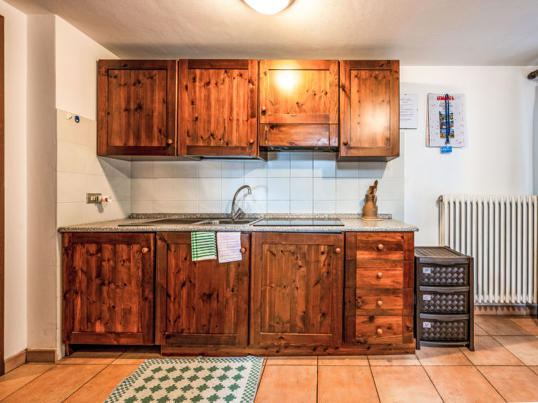 2 rom leilighet 50 m2, beliggenhet mot nord-vest. Delvis, med skråtak: stue/soverom med 2 senger og digital TV. Utgang til balkongen, beliggenhet mot sør. 1 rom med, 1 dobbeltseng. Kjøkkenkrok (4 kokeplater, frys). Dusj/bidé/WC. Oppvarming. Balkong 5 m2. Vakker utsikt av fjellene og dalen. Max små kjæledyr / små hunder tillatt 2 små kjæledyr / små hunder tillatt.