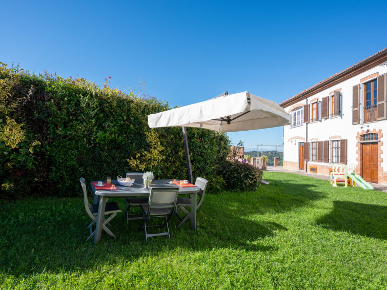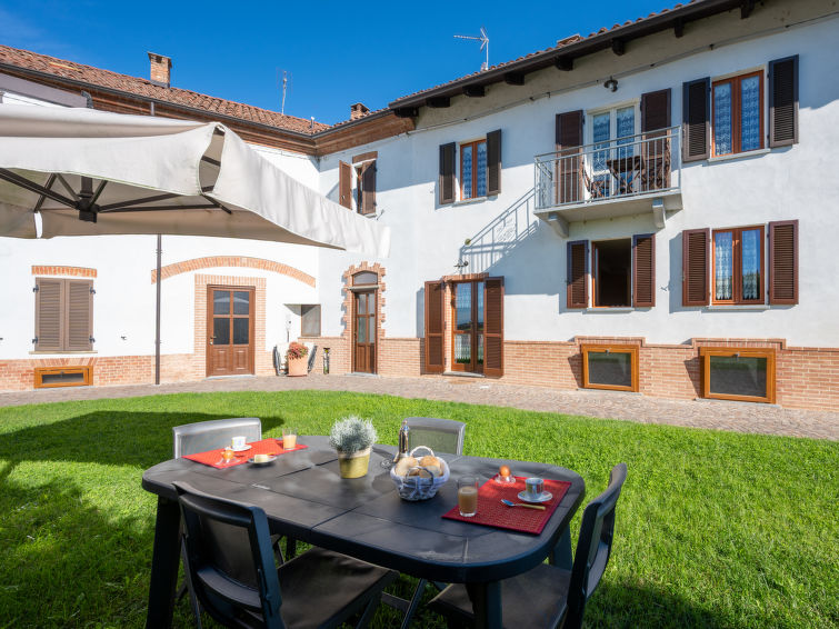 På en vingård "Il Pozzo Fiorito", omgitt av jorder og vingårder. 5 leiligheter i residensen. 100 m fra sentrum av Cossombrato, 14 km fra sentrum av Asti, 45 km fra sentrum av Turin. Fellesbruk: tomt 1'200 m2 (inngjerdet), velholdt hage med plen, 1 badebasseng (8 x 4 m, dybde 150 cm dyp, Sesongåpent: 11.Mai. - 10.Okt.). Dusj/WC ved bassenget, utendørs dusj, bordtennis, pergola, terrasse, hagemøbler, grill. I anlegget: vaskemaskin (for felles bruk ekstra), tilgjengelige sykler (ekstra). Parkering ved hbrukt på tomten. Supermarked 1 km, togstasjon "Asti" 14 km. Salg av lokale gårdsprodukter. Vennligst merk: eieren bor på same tomt.
