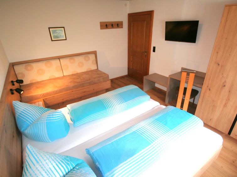 "Hedwig Jäger (KPL420)", 3 rom leilighet 65 m2, på bakkeplan. Komfortabelt og koseligt møbler: 2 rom, hvert rom med, 1 sovesoffa og 1 dobbeltseng. Kjøkken/stue (stekeovn, oppvaskmaskin, 4 keramiske kokeplater, vannkoker, mikrobølgeovn, elektrisk kaffemaskin) med, spisehjørne og satelit-TV. Utgang til terrassen. Bad/dusj, sep. WC, dobbel servant. Terrasse. Lager. Panoramautsikt av fjellene. Fasiliteter: Internett (trådløs LAN [WLAN], gratis). Vennligst merk: egen inngang, brannslukkningsapparat.