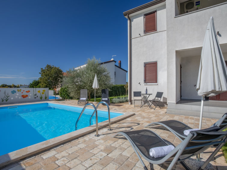 Nova Vas 6 km fra Poreč: Fin tremannsbolig "Heidi". 500 m fra sentrum av Nova Vas, i en solrikt posisjon, 5 km fra sjøen. Fellesbruk: tomt 800 m2 (inngjerdet), hage med plen, 1 badebasseng (6 x 6 m, dybde 150 cm dyp, Sesongåpent: 01.Mai. - 15.Okt.). Utendørs dusj, grill. I huset: internetilkobbling. Parkering ved hbrukt på tomten. Supermarked 600 m, restaurant 1 km, småstenstrand 5 km, strand ved klipper 5 km, offentlig badeområde 5 km. Tennis 5 km, rideskole 7 km, turstier fra hbrukt 100 m, sykkelvei 150 m. Attraksjoner i nærheten: aquapark 10 km, amusement park 15 km. Eieren godtar ikke noen ungdomsgrupper.