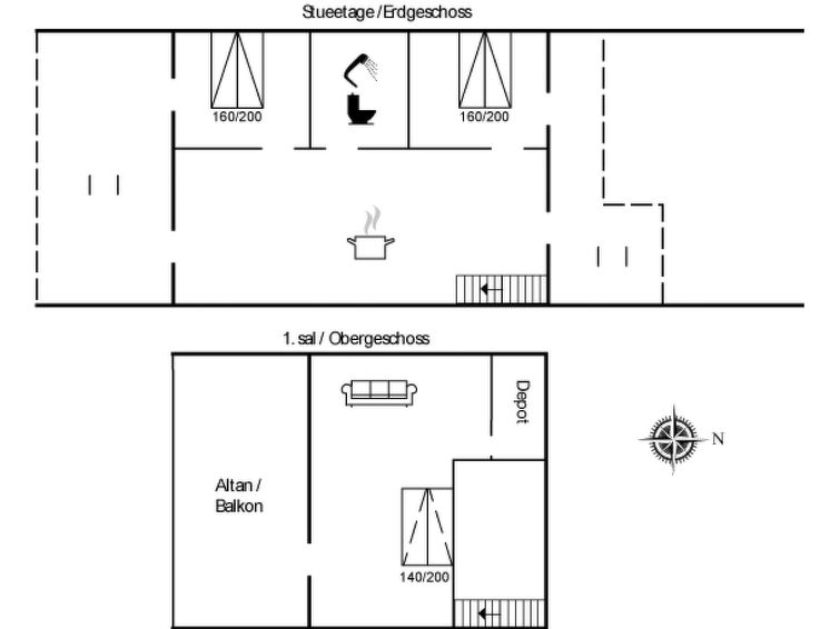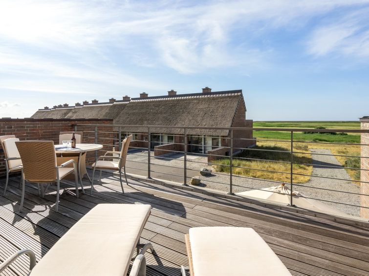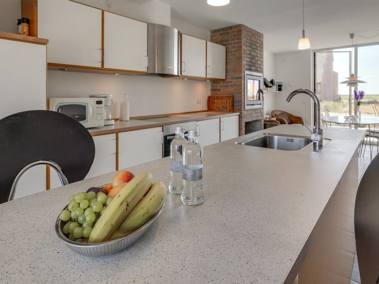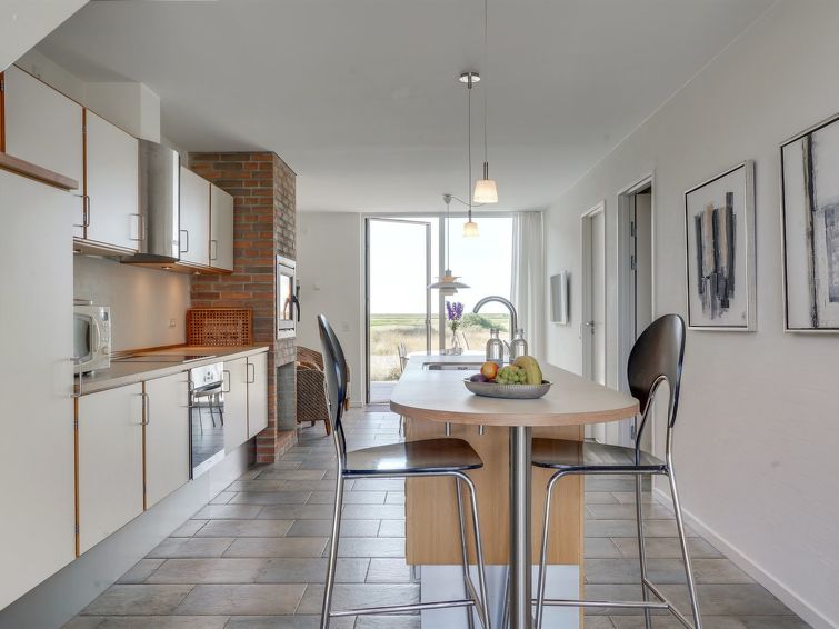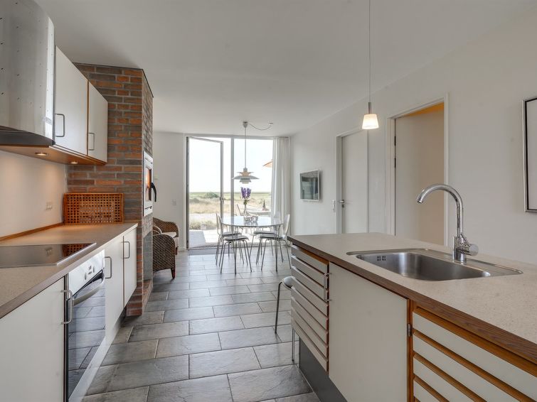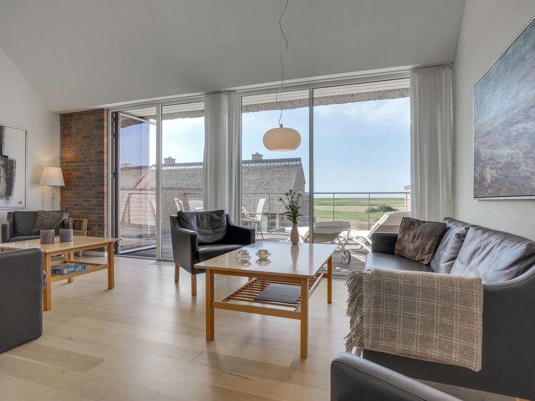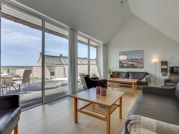 "Helgo" - 250m from the sea in Western Jutland", 3 rom leilighet 95 m2. Passer for 6 voksne. Stue med, TV, CD-spiller, stereoanlegg og DVD. 1 rom med, 1 dobbeltseng. 1 rom med, 1 dobbeltseng. Kjøkken (4 kokeplater, stekeovn, oppvaskmaskin, mikrobølgeovn, frys). Dusj/WC. øverste etasje: stue med, 1 dobbel sovesoffa. Terrasse 60 m2. Utsikt av havet. Fasiliteter: vaskemaskin, tørketrommel, høy barnestol barneseng (ekstra). Internett (trådløs LAN [WLAN]). Parkeringsplass ved hbrukt. Vennligst merk: røykfri bolig.