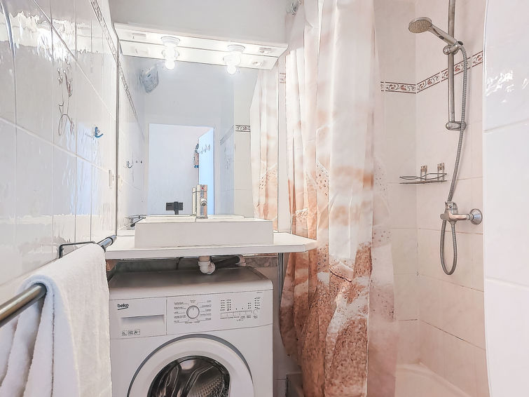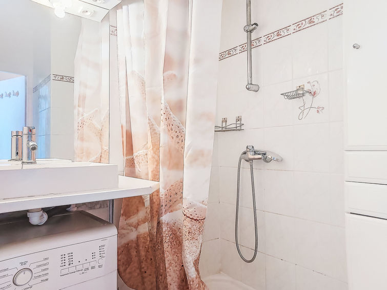 3 rom leilighet 45 m2 på 2 etasjer i 2nd etasje. Stue/spisestue med, TV (flatskjerms TV). Utgang til terrassen. Kjøkkenkrok (miniovn, 4 keramiske kokeplater, mikrobølgeovn, elektrisk kaffemaskin). Dusj, sep. WC. øverste etasje: (bratt trapp), 1 rom med 2 senger (90 cm lengde 190 cm), air-conditioning. 1 rom med, 1 dobbeltseng (1 x 140 cm, lengde 190 cm), air-conditioning. Terrasse 7 m2. Terrassemøbler. Fasiliteter: vaskemaskin. Internett (trådløs LAN [WLAN], ekstra). Parkeringsplass plass nr 9. Vennligst merk: leilighet vendt mot veien. Parkeringsplass bare for små biler. Røykvarsler.
