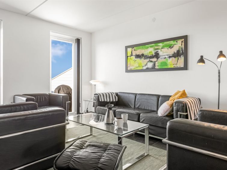 "Hugo" - 2.5km from the sea in Western Jutland", 2 rom leilighet 73 m2. Passer for 4 voksne. Stue med, TV, CD-spiller, stereoanlegg og DVD. 1 rom med, 1 dobbeltseng. 1 rom med, 1 dobbeltseng. Kjøkken (stekeovn, 4 keramiske kokeplater, frys). Dusj/WC. Terrasse 25 m2, dekt. Fasiliteter: Internett (trådløs LAN [WLAN]). Parkeringsplass ved hbrukt. Vennligst merk: røykfri bolig.