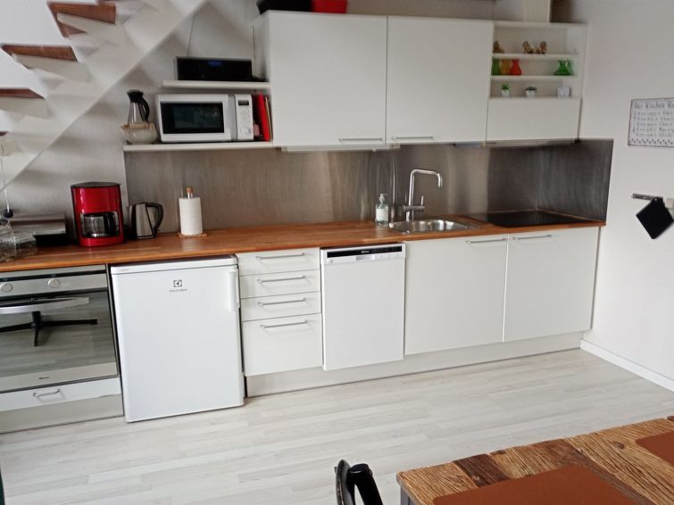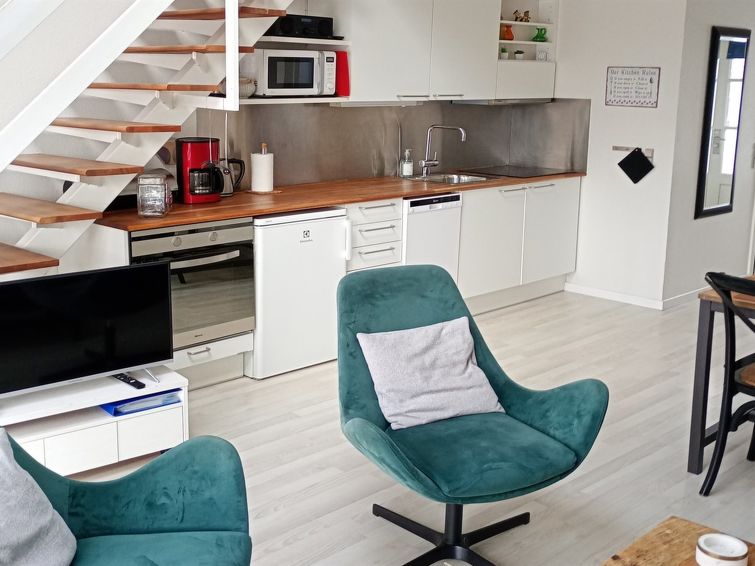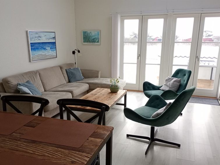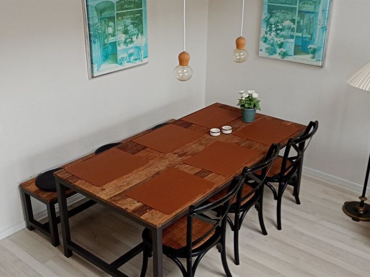 "Ingeborre" - 100m to the inlet in NW Jutland", 3 rom leilighet 60 m2. Passer for 6 voksne. Stue med, TV, radio og CD-spiller. 1 rom med, 1 dobbeltseng. Kjøkken (4 kokeplater, stekeovn, oppvaskmaskin, mikrobølgeovn, frys). Dusj/WC. øverste etasje: 1 rom med, 1 dobbeltseng og 1 sovemulighet. 1 rom med 2 senger. Terrasse 14 m2. Av viken. Fasiliteter: høy barnestol barneseng (ekstra). Internett (trådløs LAN [WLAN]). Parkeringsplass ved hbrukt. Vennligst merk: røykfri bolig.