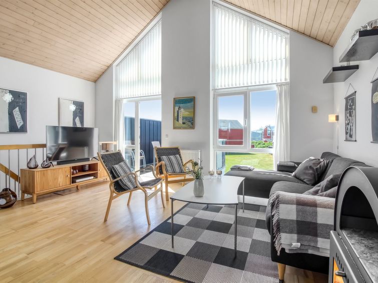 "Jören" - 700m from the sea in NW Jutland", 3 rom leilighet 97 m2. Passer for 8 voksne. Stue med, TV, radio, CD-spiller og DVD. 1 rom med, 1 dobbeltseng. 1 rom med 2 senger. Åpen galleri, 1 rom med, 1 dobbeltseng og 2 sovemuligheter. Kjøkken (stekeovn, oppvaskmaskin, 4 keramiske kokeplater, mikrobølgeovn, frys). Dusj/WC. Terrasse 11 m2, dekt. Fasiliteter: vaskemaskin, tørketrommel, høy barnestol barneseng (ekstra). Internett (trådløs LAN [WLAN]). Parkeringsplass ved hbrukt. Vennligst merk: røykfri bolig. Max kjæledyr / hund tillatt 1 kjæledyr / hund tillatt.