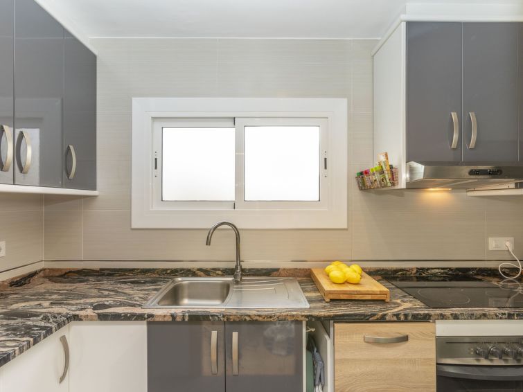 "Junco", 4 rom leilighet 75 m2. Fullstendig renovert, komfortabelt og moderne møbler: stue/spisestue med, spisebord og digital TV. Utgang til terrassen. 1 dobblet rom med 1 seng (150 cm lengde 190 cm). 1 dobblet rom med 1 seng (140 cm lengde 190 cm), dusj/WC. 1 dobblet rom med 1 seng (180 cm lengde 200 cm). Utgang til terrassen. Lite kjøkken (stekeovn, 4 keramiske kokeplater, brødrister, vannkoker, mikrobølgeovn, frys, elektrisk kaffemaskin). Bad/bidé/WC. Oppvarmingsalternativ. Terrassemøbler, liggestoler. Meget vakker utsikt av havet og området. Fasiliteter: vaskemaskin, strykejern, høy barnestol barneseng for barn opp til 2 år, hårføner. Internett (trådløs LAN [WLAN], gratis). Vennligst merk: bare TV ES. HUTG-061147