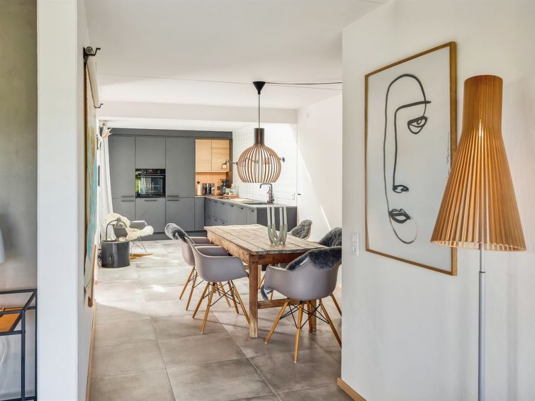 "Kaapo" - 1km from the sea in NW Jutland", 3 rom leilighet 110 m2. Passer for 6 voksne. Stue med, TV. 1 rom med, 1 dobbeltseng. 1 rom med 2 senger. Kjøkken (stekeovn, oppvaskmaskin, 4 induksjonskomfyr, mikrobølgeovn, frys). 2 dusjer/WC. øverste etasje: 1 rom med, 1 dobbeltseng. Terrasse 20 m2, dekt. Grill. Fasiliteter: vaskemaskin, tørketrommel. Internett (trådløs LAN [WLAN]). Parkeringsplass ved hbrukt. Vennligst merk: røykfri bolig. Max kjæledyr / hund tillatt 1 kjæledyr / hund tillatt.