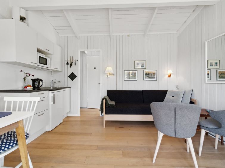 "Kjera" - 200m from the sea in Bornholm", 2 rom leilighet 24 m2. Passer for 4 voksne. Stue med, 1 dobbel sovesoffa, TV og radio. 1 rom med, 1 x 2 køysenger. Kjøkken (2 induksjonskomfyr, mikrobølgeovn, frys). Dusj/WC. Grill. Utsikt av havet. Fasiliteter: Internett (trådløs LAN [WLAN]). Parkeringsplass ved hbrukt. Vennligst merk: røykfri bolig.