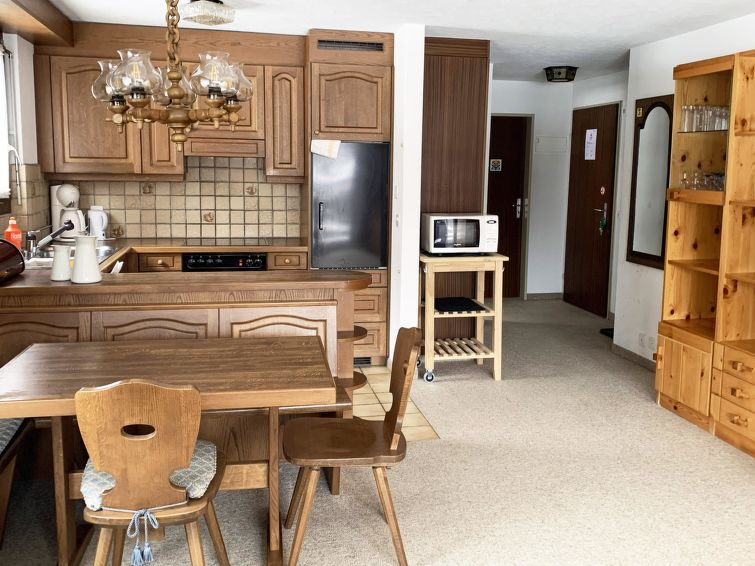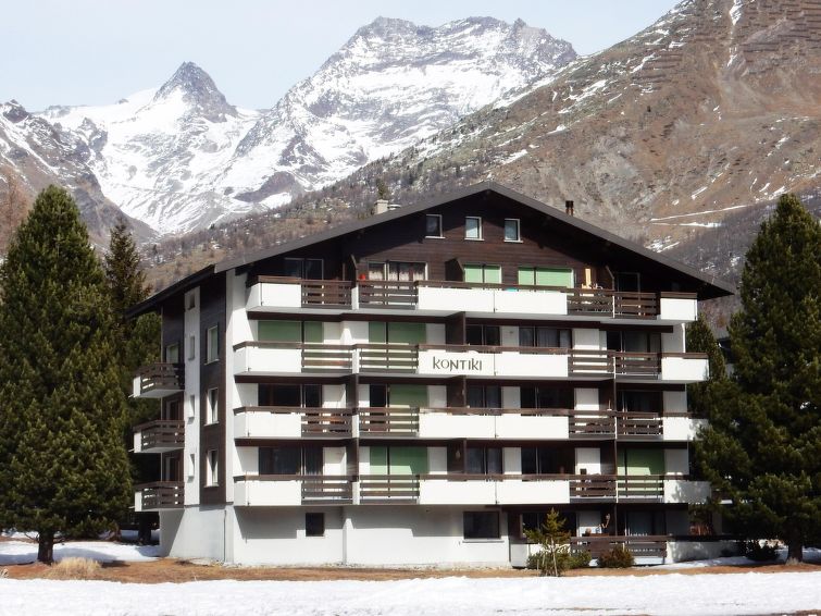 Nice and quiet two-room apartment located 600 meters from Saas Fee’s center, an 150 meters from the car parking. Kontiki C, located in sunny and quiet area with amazing views, offers a quiet place to rest and relax after a day of skiing or hiking. The local bus to the slopes stops right in front of the building, making it very easy to go to the slopes with all your equipment. The flat is situated on the 1st floor of the building, an elevator is available. There is a laundry room and ski deposit in the ground floor. Kontiki C features 1 bedroom with a sink and balcony, as well as a bed-sitting room with a large south-facing balcony, open kitchen, 1 separate bathroom with tub/sink/WC. Free Wifi is available!
