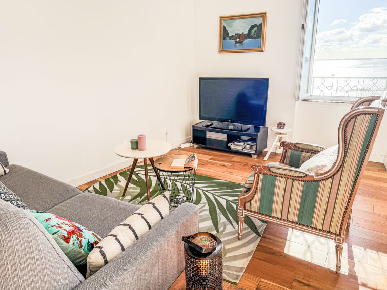 "L'Emeraude", 2 rom leilighet 55 m2 i 1st etasje. Vakkert og moderne møbler: stor stue/spisestue 30 m2 med, 1 sovesoffa (140 cm, lengde 190 cm). 1 rom med, 1 dobbeltseng (1 x 140 cm, lengde 190 cm). Åpent kjøkken (stekeovn, oppvaskmaskin, 4 induksjonskomfyr, brødrister, vannkoker, mikrobølgeovn, elektrisk kaffemaskin). Bad, sep. WC. Gassoppvarming. Parkett. Terrasse 12 m2. Terrassemøbler. Meget vakker utsikt av havet og havnen. Fasiliteter: vaskemaskin. Internett (trådløs LAN [WLAN], ekstra). Garasje (1 Bil). Vennligst merk: røykfri bolig. Røykvarsler. Tilbud fra en privatperson i henhold til art. 155, IV av CGI.
