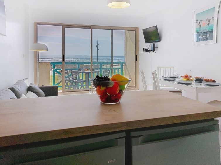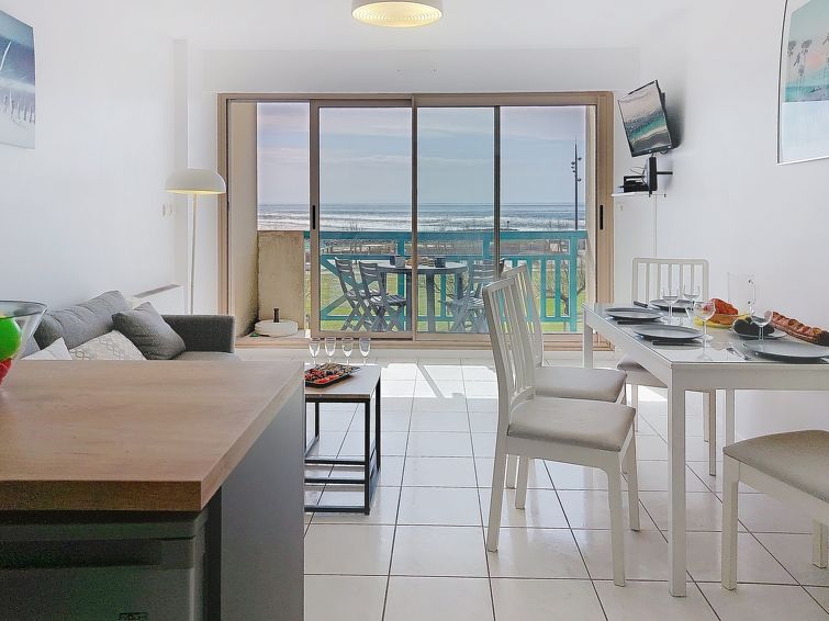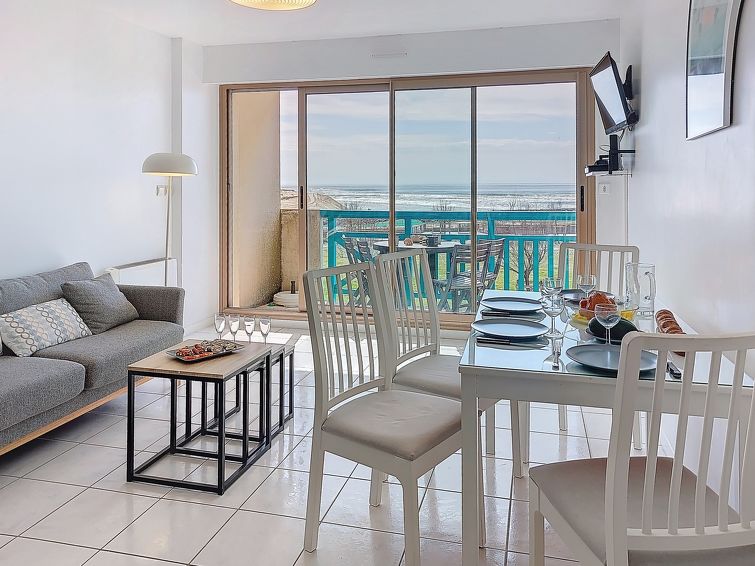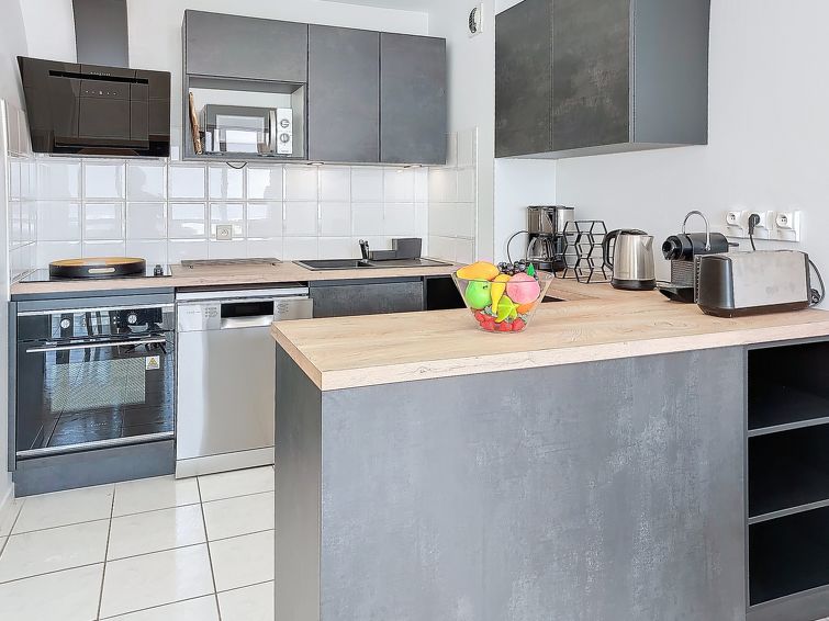 3 rom leilighet 54 m2 i 2nd etasje. Vakkert møbler: stue/spisestue med, TV (flatskjerms TV). Utgang til balkongen. 1 rom med, 1 dobbeltseng (1 x 160 cm, lengde 200 cm). 1 rom med 2 senger. Kjøkkenkrok (oppvaskmaskin, 4 keramiske kokeplater, mikrobølgeovn, elektrisk kaffemaskin). Bad, sep. WC. El-oppvarming. Balkong. Balkongmøbler. Utsikt av havet. Fasiliteter: vaskemaskin. Internett (trådløs LAN [WLAN], gratis). Parkeringsplass. Vennligst merk: max kjæledyr / hund tillatt 1 kjæledyr / hund tillatt. Bare TV FR, DE. Røykvarsler.
