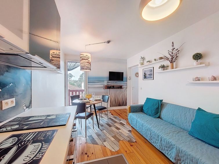 Hossegor: Residens "la Pergola", bygget i 2018. I sentrum av Hossegor, i en sentrale posisjon, utmerkt område: midt i sentrum, men roligt, 1 km fra sjøen, 50 m fra innsjø, beliggenhet mot øst. Parkering. Butikk, daglivarehandel 50 m, supermarked 1 km, restaurant, bar, bakeri, café, sykkelutleie 50 m, sandstrand 1 km. Golfbane(18 hull) 1 km. Grupper med tenåringer- bare ved forespørsel.