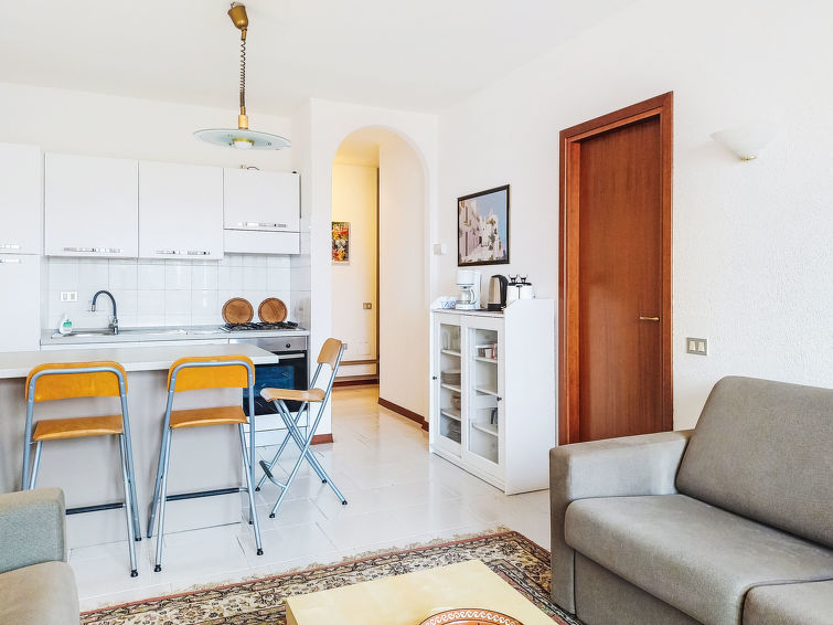 3 rom leilighet 70 m2 i 1st etasje. Praktiskt møbler: stue/spisestue med, 1 dobbel sovesoffa og satelit-TV. Utgang til terrassen. 2 rom, hvert rom med 1 seng. Åpent kjøkken (4 kokeplater, stekeovn, oppvaskmaskin, frys, elektrisk kaffemaskin). Dusj/bidé/WC. Gassoppvarming (ekstra). Oppvarming kun tilgjengelig fra 15.10. til 15.04. Terrasse 6 m2. Terrassemøbler. God utsikt av vannet. Fasiliteter: vaskemaskin. Internett (trådløs LAN [WLAN], gratis). Garasje. CIR:012020-CNI-00008