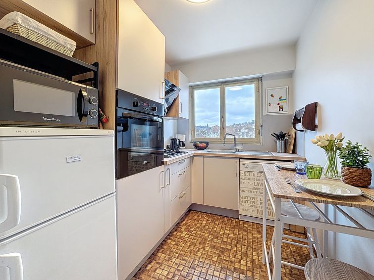 Trouville sur mer: Residens "Laetitia". 1.3 km fra sjøen, 1.3 km fra stranden. I anlegget: heis. (3 trinn). Offentlig parkering på veien. Butikk, daglivarehandel 200 m, supermarked 2.1 km, restaurant, bussholdeplass 200 m, togstasjon "Deauville-Trouville" 350 m, innendørs pool 1.2 km, termalbad "Trouville sur mer" 1.1 km. Golfbane 4.5 km, seileskole 2.5 km, tennis 1.3 km. Attraksjoner i nærheten: Hippodrome Deauville La Touques 2.4 km, Honfleur 14 km, Mémorial de Caen 54 km, Plages du Débarquement D'Arromanches 86 km. Nøkkelleveringen skjer i Interhome i Deauville.