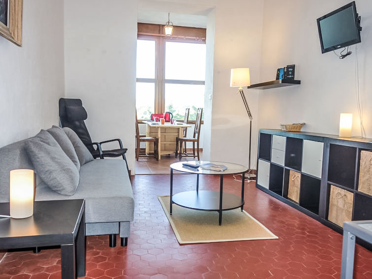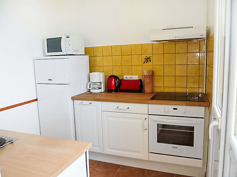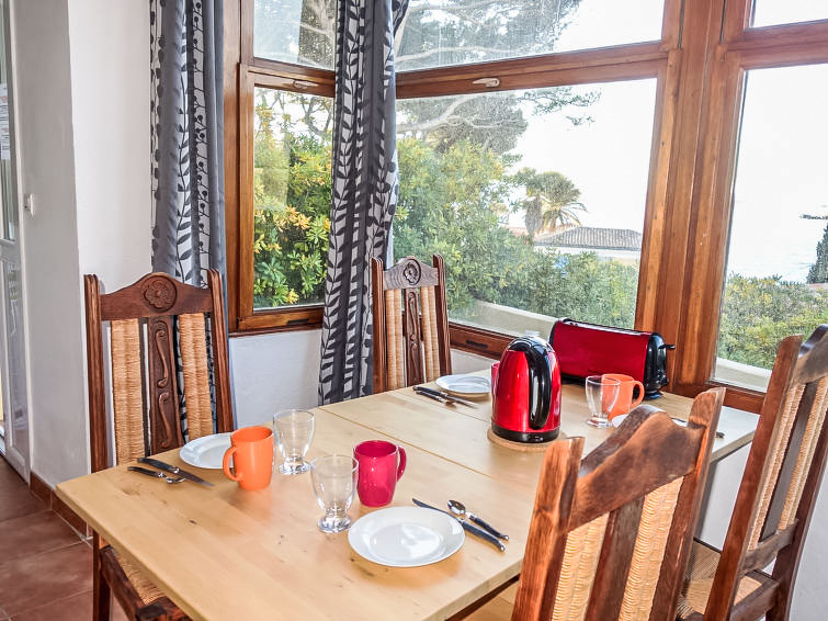 3 rom leilighet 48 m2, på bakkeplan. Lys, praktiskt og komfortabelt møbler: stue/spisestue med, TV (flatskjerms TV). 1 rom med, 1 dobbeltseng (1 x 140 cm, lengde 190 cm). 1 rom med, 1 x 2 køysenger (80 cm, lengde 200 cm). Åpent kjøkken (ovn, oppvaskmaskin, 3 keramiske kokeplater, frys, elektrisk kaffemaskin, kombinert mikrobølgeovn). Utgang til terrassen. Sittebadekar/WC. El-oppvarming. Terrasse 18 m2. Terrassemøbler, elektrisk grill. Hærlig panoramautsikt av havet. Fasiliteter: vaskemaskin, strykejern, barneseng for barn opp til 2 år. Internett (trådløs LAN [WLAN], gratis). Vennligst merk: max 1 lite kjæledyr / liten hund tillatt. Bare TV FR. Røykvarsler.