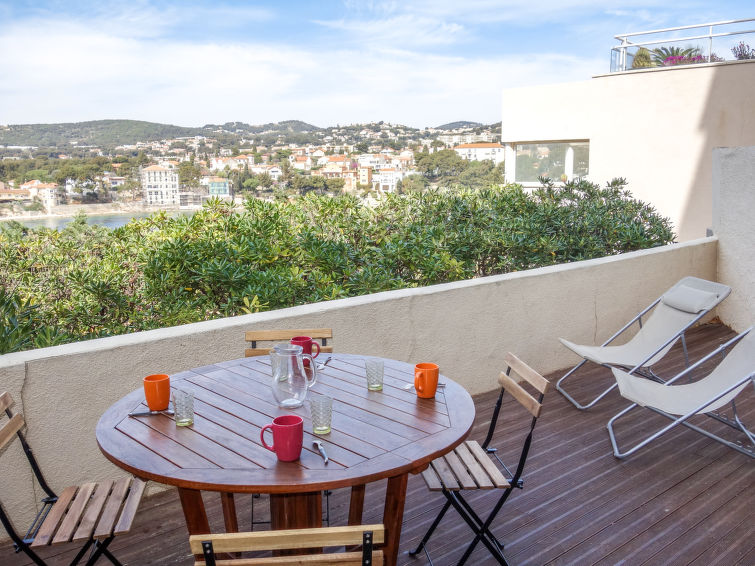 Bandol: Residens "Le Chateau", med 4 etasjer. I området, 400 m fra sentrum, 200 m fra sjøen, 200 m fra stranden. I anlegget: parkering (begrenset antall plasser). Butikk 200 m, supermarked 1.8 km, restaurant 100 m, togstasjon 1.4 km, sandstrand "Renecros" 200 m. Sporthavn 400 m, golfbane(18 hull) 4.5 km. Attraksjoner i nærheten: Casino de jeux 1 km. Turstier Sainte Baume, Sainte Victoire, Calanques Port Cros, porquerolles. Sainte Baume, Sainte Victoire. Nøkkelleveringen skjer i Interhome i Saint Cyr Sur Mer, 9 km.