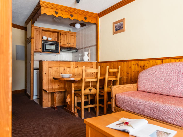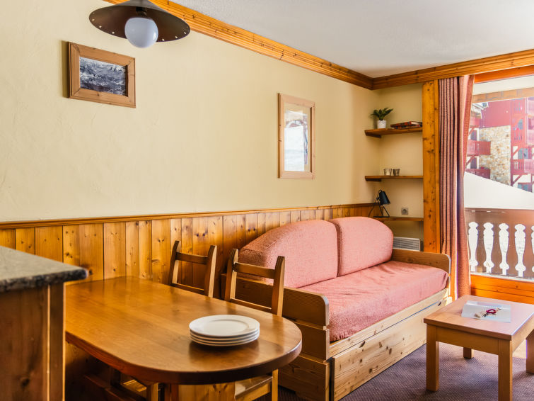 Rustikk leilighetsvarmeell "Le Cheval Blanc". I området Val Thorens, 10 km fra sentrum av Les Ménuires, i en solrikt posisjon ved en høyde, direkte ved skiområdet. I anlegget: resepsjon, restaurant, bar, skirom. Felles garasje (ekstra). Parkeringsplass eller garasjeplass bare for små ti Dimensjon: høyde 195 cm. Butikk 300 m, restaurant 100 m, bussholdeplass 500 m. Idrettsenter 600 m, skiheis, skibakker, skiutleie 50 m. Velkjente skiområder: Les 3 Vallées. Vennligst merk: Hbrukt kan ved bra snøforhold nåes via ski. Av- og pålastning av bagasje er mulig ved feriebol. Bildet er et eksempel. Feriehuset kan variere i stue, planløsning, utstyr og møbler.