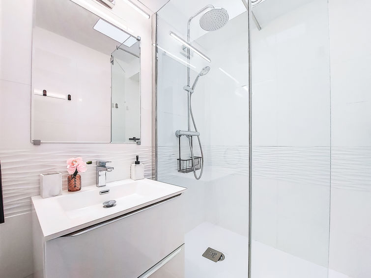 1 rom etromsleilighet 22 m2 i 2nd etasje, beliggenhet mot nord-vest. Stue/spisestue med, 1 dobbel sovesoffa (140 cm, lengde 190 cm). Alkove, 2 køysenger (90 cm, lengde 190 cm). Kjøkkenkrok (2 keramiske kokeplater, mikrobølgeovn, elektrisk kaffemaskin). Dusj, sep. WC. Oppvarming, airconditioning. Terrasse 5 m2. Terrassemøbler. Fasiliteter: Internett (trådløs LAN [WLAN], ekstra). Vennligst merk: ingen parkeringsplass. Røykvarsler.