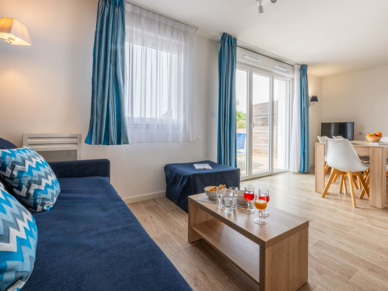 Resort "Le Domaine des Pins", med 3 etasjer, bygget i 2016. 87 leiligheter i residensen. 1.5 km fra sentrum av Noirmoutier, 44 km fra sentrum av Challans, 91 km fra sentrum av Nantes, 400 m fra sjøen. Fellesbruk: tomt 10'000 m2 (inngjerdet), 1 badebasseng oppvarmt (15 x 8 m, dybde 145- 155 cm dyp, Sesongåpent: 01.Jan. - 31.Des.). Barnebasseng, bordtennis, lekeplass. I anlegget: resepsjon, treningsrom, dampbad (ekstra). Vaskemaskin, tørketrommel (for felles bruk ekstra). Butikk 1.5 km, sandstrand 400 m. Vennligst merk: Bildet er et eksempel. Feriehuset kan variere i stue, planløsning, utstyr og møbler.