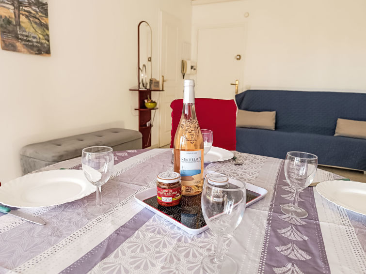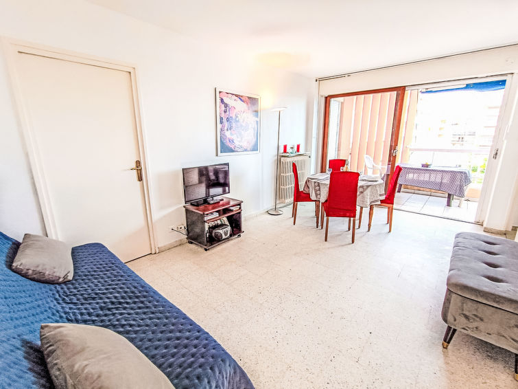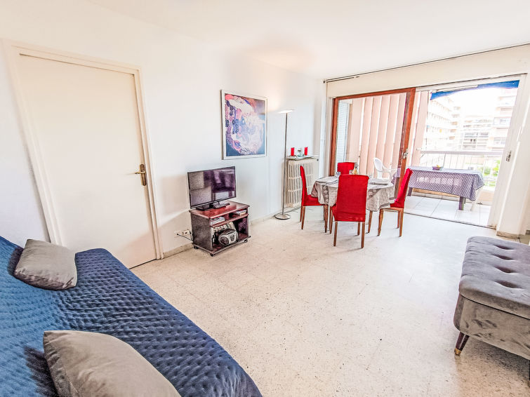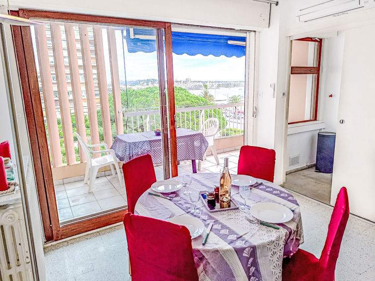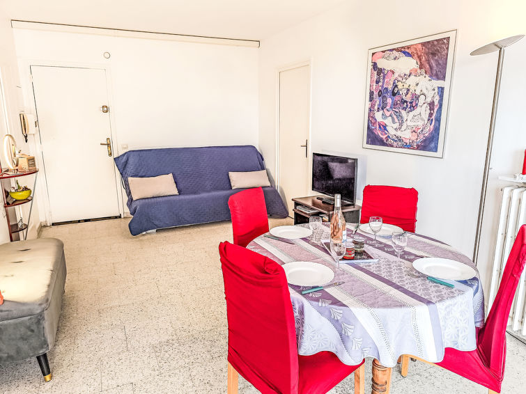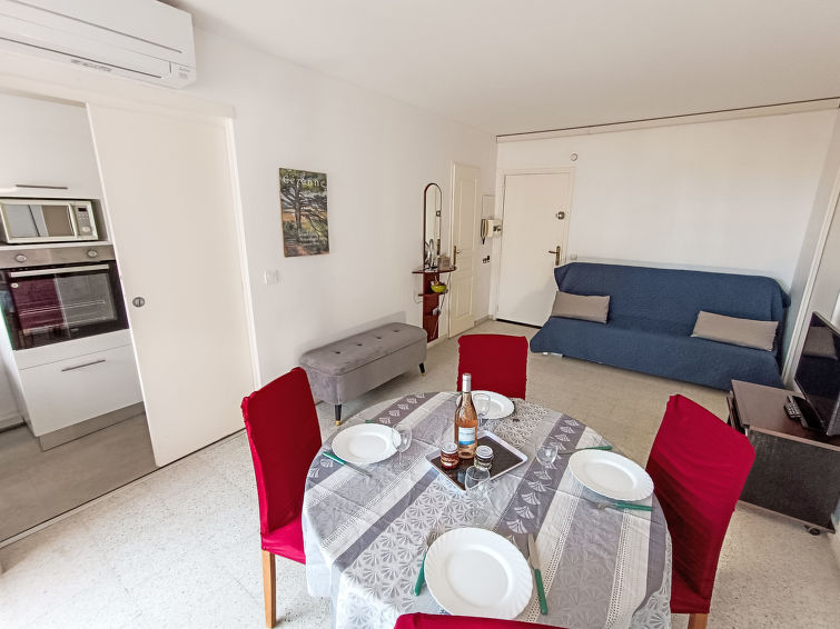 2 rom leilighet 43 m2 i 3rd etasje. Stue/spisestue med, 1 dobbel sovesoffa (1 x 140 cm, lengde 190 cm), TV og air-conditioning. Utgang til terrassen. 1 rom med, 1 dobbeltseng (1 x 160 cm, lengde 200 cm), elektrisk oppvarming og air-conditioning. Utgang til terrassen. Åpent kjøkken (4 kokeplater, oppvaskmaskin, brødrister, vannkoker, mikrobølgeovn, frys, elektrisk kaffemaskin). Dusj/WC. Terrasse 5 m2. Terrassemøbler. Vakker utsikt av havet. Fasiliteter: vaskemaskin, hårføner. Internett (trådløs LAN [WLAN], ekstra). Garasje plass nr 97 i 300 m, høyde 185 cm, bredde 218 cm. Vennligst merk: røykfri bolig. Røykvarsler, ingen heis.