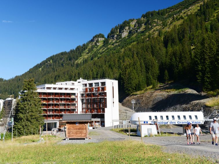 Stor, moderne residens "Odalys - Le Panoramic", med 8 etasjer, bygget i 2014. 56 leiligheter i residensen. I området Flaine Forêt 28 km fra sentrum av Cluses, i en sentrale posisjon, direkte ved skiområdet. Fellesbruk: innendørs pool oppvarmt (10 x 5 m, dybde 85- 135 cm dyp). I anlegget: resepsjon, badstu (ekstra). Dampbad (ekstra). Heis, skirom, vaskemaskin, tørketrommel (for felles bruk ekstra). Rundstykkeservice. Felles garasje (ekstra) ved hbrukt. Parkeringsplass eller garasjeplass bare for små ti Dimensjon: høyde 205 cm. Butikk, daglivarehandel, restaurant, bar 100 m, togstasjon "Cluses" 28.5 km. Turstier fra hbrukt, stolheis, skibakker 20 m, skiutleie 100 m. Velkjente skiområder: Le Grand Massif. Vennligst merk: Hbrukt kan ved bra snøforhold nåes via ski. Bildet er et eksempel. Feriehuset kan variere i stue, planløsning, utstyr og møbler.