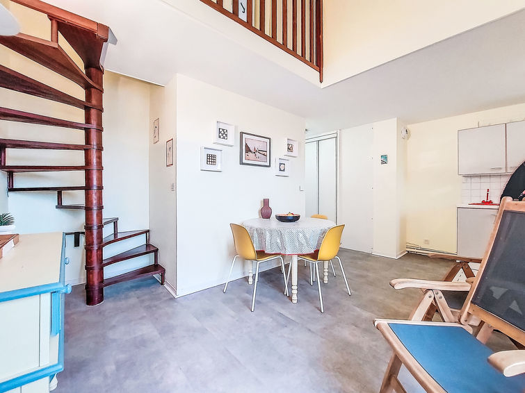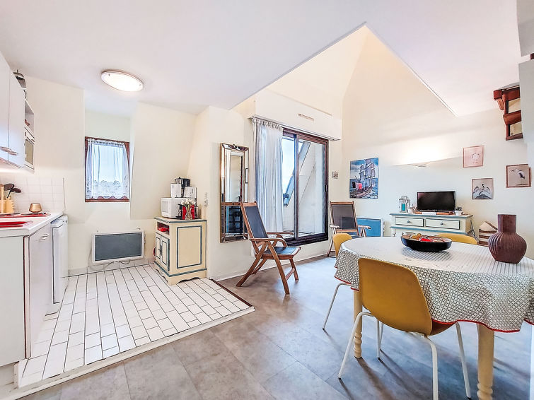 Deauville: Leilighetshus "Le Plazza", med 4 etasjer. I en sentrale posisjon, i byens hjerte, 900 m fra sjøen, 900 m fra stranden. I anlegget: heis. (5 trinn). Butikk 100 m, daglivarehandel 180 m, supermarked 2.5 km, restaurant 10 m, togstasjon "Deauville-Trouville" 350 m, innendørs pool 1.1 km, termalbad "Deauville" 1.1 km. Golfbane 3.9 km, tennis, rideskole 850 m. Attraksjoner i nærheten: Centre International Deauville - CID 900 m, Hippodrome Deauville-La Touques 750 m, Mémorial de Caen 54 km, Plage du Débarquement d'Arromanches 85 km. Nøkkelleveringen skjer i Interhome i Deauville.