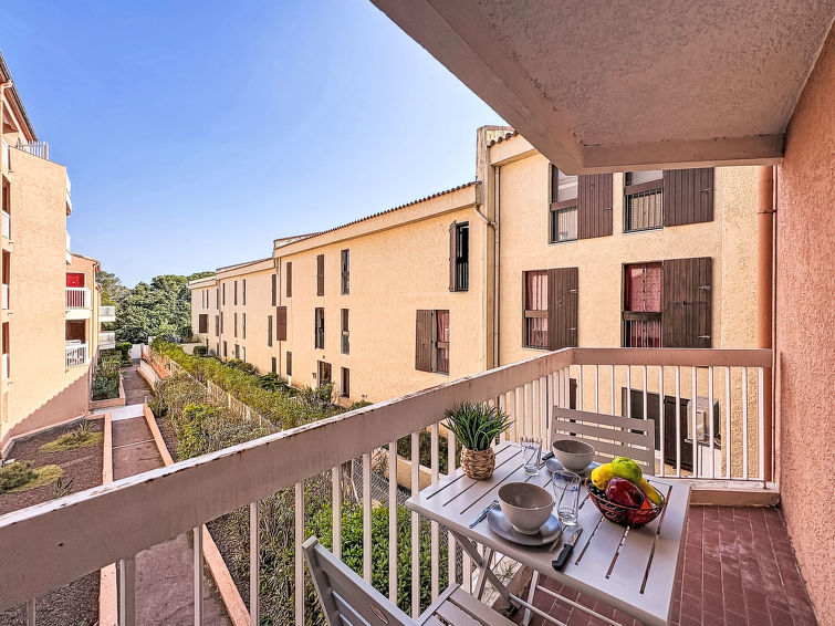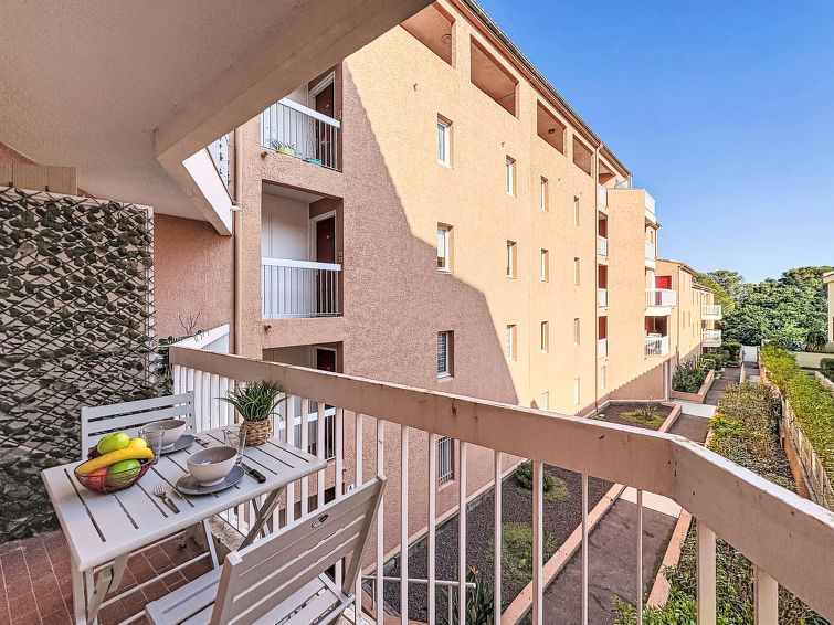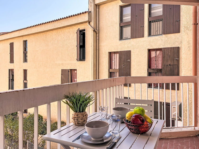 1 rom etromsleilighet 26 m2 i 1st etasje, østvendt beliggenhet. Enkelt møbler: stue/spisestue med, 2 uttrekkbare senger (2 pers. 2 x 80 cm, lengde 200 cm), TV (flatskjerms TV), air-conditioning. Utgang til terrassen. Kjøkkenkrok (2 keramiske kokeplater, brødrister, vannkoker, mikrobølgeovn, elektrisk kaffemaskin). Bad/WC. Oppvarming. Balkong 3 m2. Balkongmøbler. Fasiliteter: strykejern, hårføner. Internett (trådløs LAN [WLAN], ekstra). Vennligst merk: leilighet vendt mot bakgården. Kjøleskap uten frys. Bare TV FR. Røykvarsler.