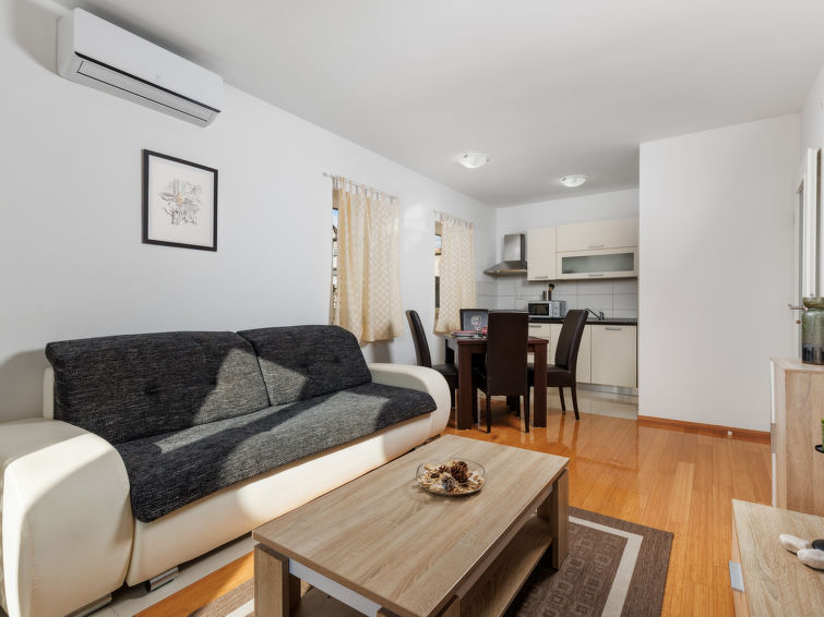 2 rom leilighet 41 m2, på bakkeplan, beliggenhet mot sør-vest. Smakfullt møbler: stue/spisestue 21 m2 med, 1 dobbel sovesoffa (160 cm, lengde 190 cm), satelit-TV (flatskjerms TV), air-conditioning. Utgang til balkongen. 1 rom med, 1 dobbeltseng (160 cm, lengde 200 cm). Utgang til balkongen. Åpent kjøkken (4 kokeplater, stekeovn, mikrobølgeovn, frys, elektrisk kaffemaskin). Dusj/WC. Oppvarmingsalternativ. Balkong 10 m2. Balkongmøbler. Utsikt av svømmebassenget. Fasiliteter: hårføner. Internett (trådløs LAN [WLAN], gratis).