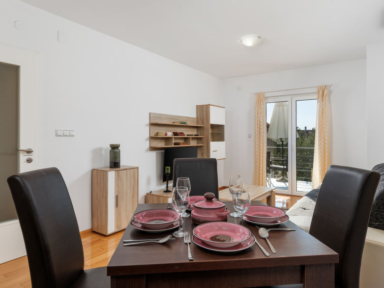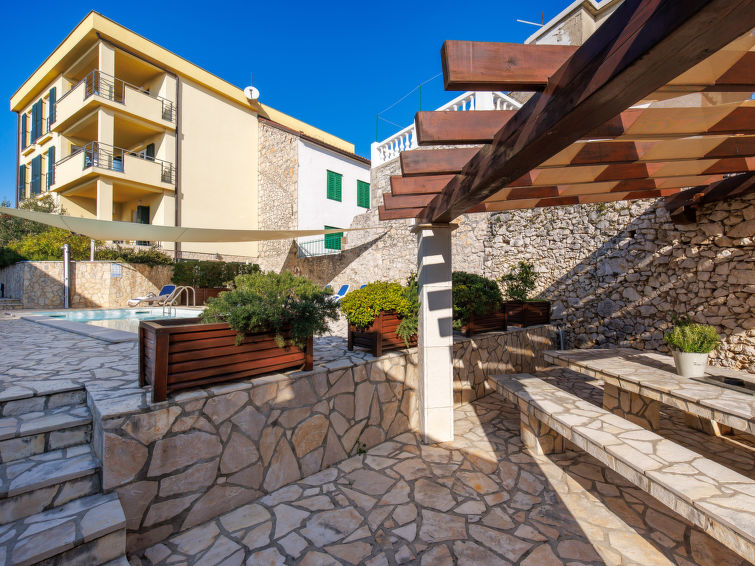 Flermannsbolig "Leko". 130 m fra sentrum av Novi Vinodolski, i en solrikt posisjon, utmerkt område: midt i sentrum, men roligt, 450 m fra sjøen, 450 m fra stranden. Fellesbruk: 1 badebasseng firkantet (8 x 3 m, dybde 150 cm dyp, Sesongåpent: 01.Mai. - 15.Okt.). Utendørs dusj, hagemøbler, grill. I huset: internetilkobbling, bordtennis, fotballsbord, vaskemaskin (for felles bruk ekstra). Flyplasstransporten (ekstra). Smal Tilgang med bil hele veien til hbrukt. Parkering ved hbrukt på tomten. Butikk, supermarked 130 m, sandstrand, stenstrand 650 m, betonglagt strand 450 m. Vennligst merk: på forespørsel: transporten flyplass- ferieområdet. Privat båtplass (ekstra) på forespørsel. Parkering i 200 m avstand (inngjerdet).