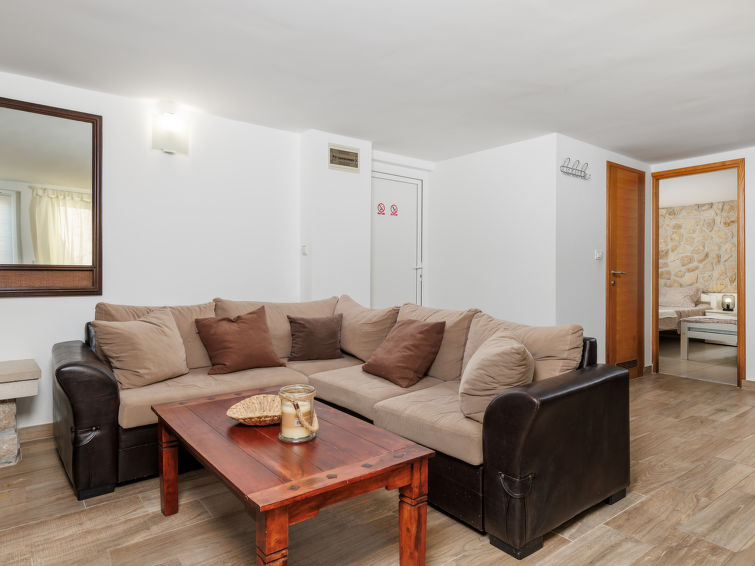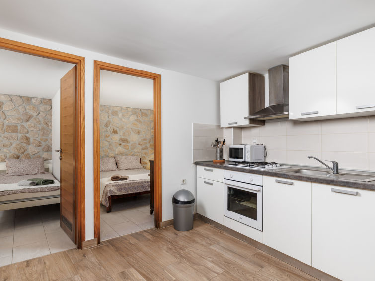 3 rom leilighet 50 m2, nederste etasje, beliggenhet mot sør-øst. Stue/spisestue, Lav dørhøyde 220 cm med, åpen peis (kun til dekorasjon), satelit-TV (flatskjerms TV), air-conditioning. Utgang til terrassen, til badebassenget. 1 rom Lav dørhøyde 220 cm, uten vindu med, 1 dobbeltseng (140 cm, lengde 200 cm). 1 rom Lav dørhøyde 220 cm, uten vindu med 2 senger (90 cm lengde 200 cm). Åpent kjøkken (4 kokeplater, stekeovn, mikrobølgeovn, frys, elektrisk kaffemaskin), takhøyde 220 cm. Dusj/WC. Oppvarmingsalternativ. Terrassemøbler. Fasiliteter: Internett (trådløs LAN [WLAN], gratis).