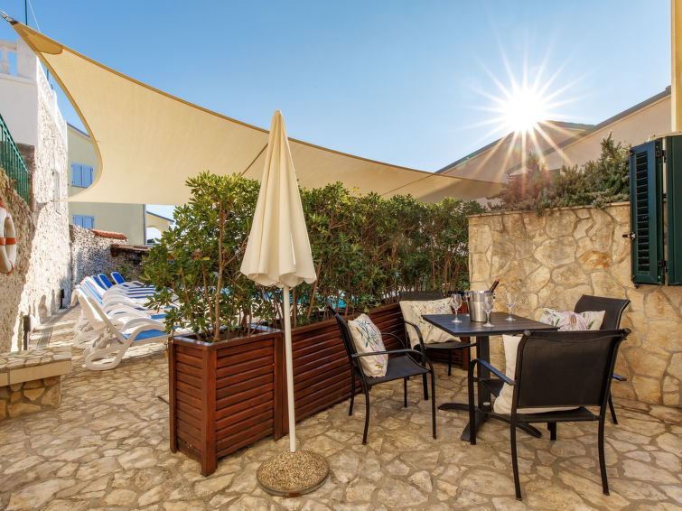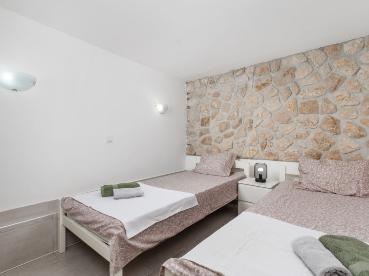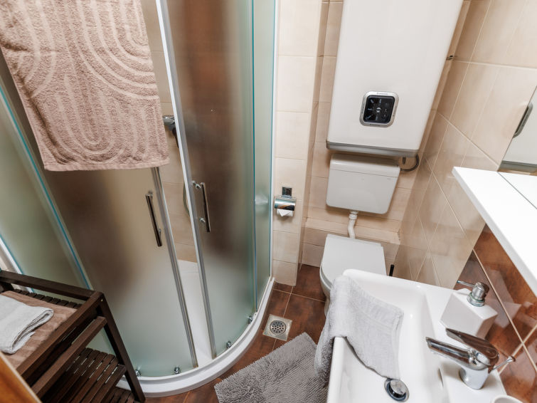 Flermannsbolig "Leko". 130 m fra sentrum av Novi Vinodolski, i en solrikt posisjon, utmerkt område: midt i sentrum, men roligt, 450 m fra sjøen, 450 m fra stranden. Fellesbruk: 1 badebasseng firkantet (8 x 3 m, dybde 150 cm dyp, Sesongåpent: 01.Mai. - 15.Okt.). Utendørs dusj, hagemøbler, grill. I huset: internetilkobbling, bordtennis, fotballsbord, vaskemaskin (for felles bruk ekstra). Flyplasstransporten (ekstra). Smal Tilgang med bil hele veien til hbrukt. Parkering ved hbrukt på tomten. Butikk, supermarked 130 m, sandstrand, stenstrand 650 m, betonglagt strand 450 m. Vennligst merk: på forespørsel: transporten flyplass- ferieområdet. Privat båtplass (ekstra) på forespørsel. Parkering i 200 m avstand (inngjerdet).