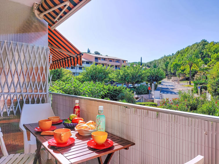Residens "Les Aigues Marines", med 3 etasjer. I området 2 km fra sentrum av Saint Cyr sur Mer, i en høyt posisjon i et boligområde, 600 m fra sjøen, 600 m fra stranden, ligger ved en mindre vei, i det grønne. Parkering (begrenset antall plasser), offentlig parkering ekstra. Daglivarehandel 200 m, restaurant 500 m, sandstrand "La Madrague", stenstrand 600 m. Sporthavn 500 m, golfbane(18 hull) 4 km. Attraksjoner i nærheten: Aqualand 3 km, Sentier du Littoral 1 km. Turstier Sainte Baume, Sainte Victoire, Calanques Port-Cros, Porquerolles, Ile verte, Embiez, Figuerolles, Cassis. Vennligst merk: Bildet er et eksempel. Det er flere lignende leiligheter i samme hus.