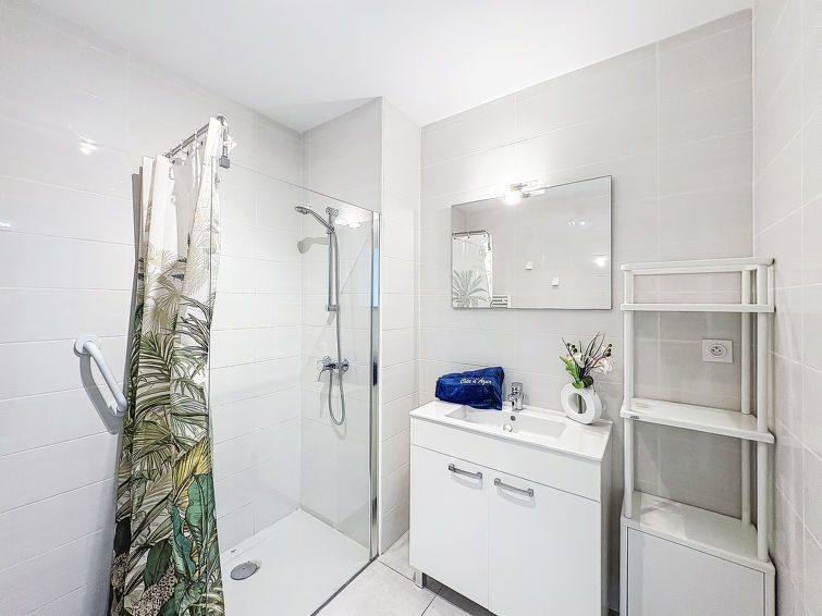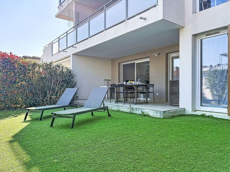 Residens "Les Calanques de Saint Aygulf", med 2 etasjer, bygget i 2018. I området 500 m fra sentrum av Saint Aygulf, i et boligområde, utmerkt område: midt i sentrum, men roligt, 290 m fra sjøen, 290 m fra stranden. Fellesbruk: 1 badebasseng firkantet oppvarmt, inngjerdet (13 x 6 m, dybde 70- 140 cm dyp, Sesongåpent: 01.Mai. - 30.Sep. bassengets åpningstider: 09:00-12:00 og 14:00-19:30). Dusj/WC ved bassenget. Butikk, daglivarehandel, supermarked 500 m, kjøpesenter 6 km, restaurant 300 m, bar 500 m, bakeri 300 m, sandstrand "Grande Plage de Saint Aygulf" 1.5 km småstenstrand "Calanque des Corailleurs" 290 m. Sporthavn 1.5 km, golfbane(18 hull) 8 km, rideskole 8 km. Attraksjoner i nærheten: Lunapark, Aqualand 5 km, Fréjus 6 km, Saint Raphaël 8 km, Saint Tropez 30 km, Cannes 50 km, Marineland 60 km. Bygning med elektriske portener. Nøkkelleveringen skjer i Interhome i Saint Aygulf.