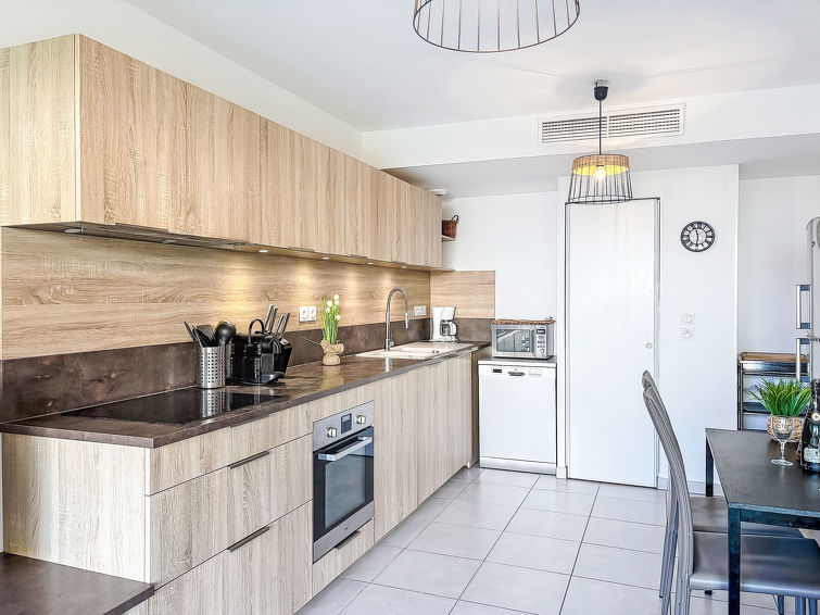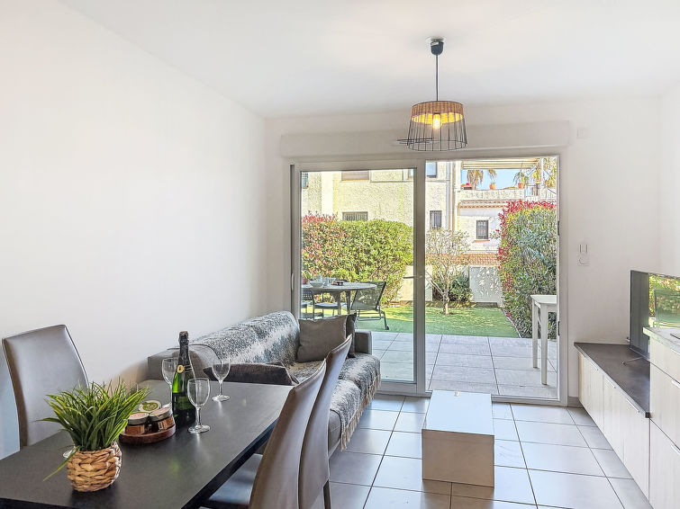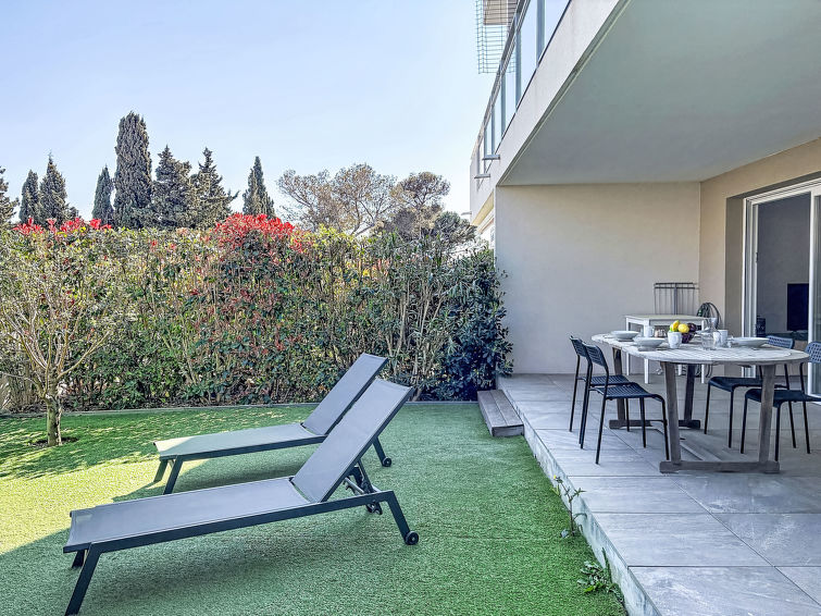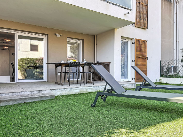 3 rom leilighet 55 m2, på bakkeplan, beliggenhet mot sør-øst. Vakkert og moderne møbler: stue/spisestue med panoramavindu med, TV (flatskjerms TV), air-conditioning og motoriserte persienner. Utgang til hagen, til terrassen. 1 rom med, 1 dobbeltseng (1 x 140 cm, lengde 190 cm), TV (flatskjerms TV), air-conditioning. Utgang til hagen, til terrassen. 1 rom med, 1 dobbeltseng (1 x 140 cm, lengde 190 cm), air-conditioning. Utgang til hagen, til terrassen. Åpent kjøkken (stekeovn, oppvaskmaskin, 3 induksjonskomfyr, brødrister, vannkoker, mikrobølgeovn, frys, elektrisk kaffemaskin, Internet(Nespresso), ekstra). Dusj, sep. WC. Oppvarming. Terrasse 15 m2, dekt, hage 73 m2. Terrassemøbler, liggestoler (2). Utsikt av hagen. Fasiliteter: vaskemaskin, strykejern, hårføner. Internett (trådløs LAN [WLAN], ekstra). Parkeringsplass plass nr 15 (1 Bil). Vennligst merk: velegnet for familier. Røykfri bolig. Bare TV FR. Røykvarsler.