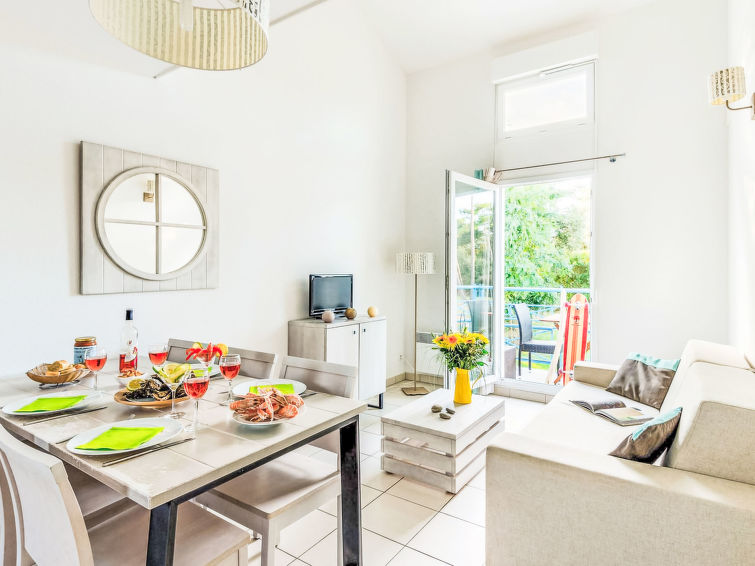 "Les Carrelets 36X", 3 rom leilighet 44 m2 på 2 etasjer i 1st etasje. Lys, praktiskt og komfortabelt møbler: stue/soverom med, 1 dobbel sovesoffa, spisebord og TV. Utgang til balkongen. 1 rom med, 1 dobbeltseng. Kjøkkenkrok (oppvaskmaskin, 2 keramiske kokeplater, mikrobølgeovn, frys). Sep. WC. øverste etasje: 1 rom med 2 senger. Bad/WC. El-oppvarming. Balkong. Balkongmøbler. Fasiliteter: høy barnestol barneseng (ekstra). Internett (trådløs LAN [WLAN], ekstra). Max kjæledyr/små hunder tillatt 2 kjæledyr/små hunder tillatt. På grunn av Coronaviruset (COVID-19) iverksetter dette overnattingsstedet forebyggende tiltak for å beskytte gjester og ansatte. Noen tjenester og fasiliteter kan derfor bli redusert eller er ikke tilgjengelig i det hele tatt.
