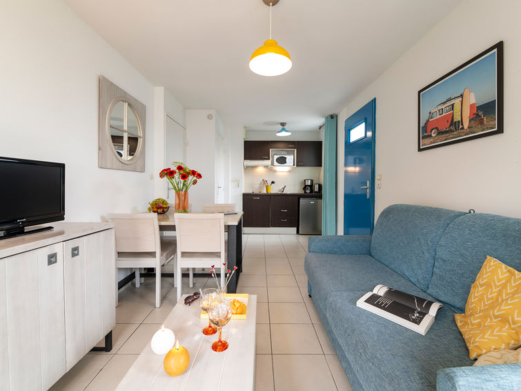 "Les Carrelets 48/48X", 4 rom leilighet 60 til 65 m2 på 2 etasjer, på bakkeplan. Lys, praktiskt og komfortabelt møbler: stue/soverom med, 1 dobbel sovesoffa, spisebord og TV. Utgang til terrassen. 1 rom med, 1 dobbeltseng. Kjøkkenkrok (oppvaskmaskin, 2 keramiske kokeplater, mikrobølgeovn, frys). Dusj/WC. El-oppvarming. øverste etasje: 1 rom med, 1 dobbeltseng. 1 rom med 2 senger. Bad, sep. WC. Terrasse. Terrassemøbler. Fasiliteter: høy barnestol barneseng (ekstra). Internett (trådløs LAN [WLAN], ekstra). Max kjæledyr/små hunder tillatt 2 kjæledyr/små hunder tillatt. På grunn av Coronaviruset (COVID-19) iverksetter dette overnattingsstedet forebyggende tiltak for å beskytte gjester og ansatte. Noen tjenester og fasiliteter kan derfor bli redusert eller er ikke tilgjengelig i det hele tatt.