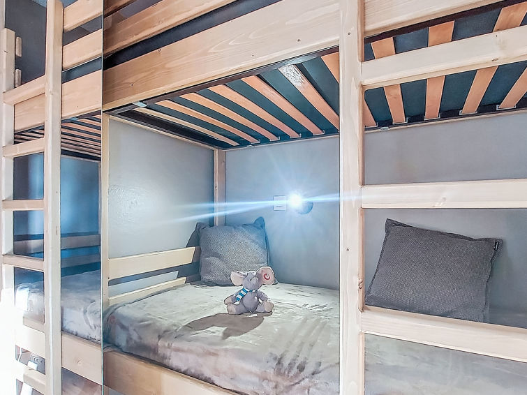"Cime de Caron 2207", 1 rom leilighet 24 m2 i 2nd etasje, beliggenhet mot sør. Stue/spisestue med, 1 x 2 køysenger (80 cm, lengde 190 cm), TV (flatskjerms TV), el-radiator. Utgang til balkongen, beliggenhet mot sør. 1 åpent litet rom med, 1 dobbeltseng (140 cm, lengde 190 cm), el-radiator. Kjøkkenkrok (stekeovn, oppvaskmaskin, 2 induksjonskomfyr, vannkoker, elektrisk kaffemaskin, kombinert mikrobølgeovn). Bad/WC. Parkett. Balkong 2 m2, beliggenhet mot sør. Vakker utsikt av fjellene. Fasiliteter: Internett (trådløs LAN [WLAN], ekstra). Vennligst merk: kjøleskap uten frys, røykfri bolig. Røykvarsler. 73257010415WF