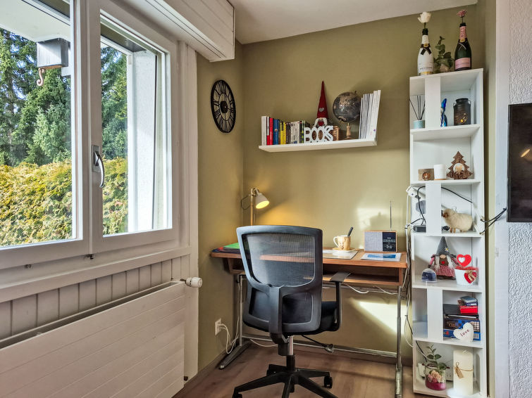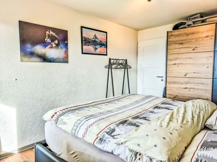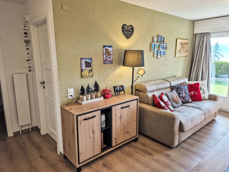 2 rom leilighet 48 m2, på bakkeplan. Fullstendig renovert i 2022, meget komfortabelt og smakfullt møbler: stue/spisestue med, 1 sovesoffa (140 cm, lengde 200 cm), kabel-TV (flatskjerms TV). Utgang til terrassen, beliggenhet mot sør-vest. 1 rom med, 1 dobbeltseng (180 cm, lengde 200 cm). Utgang til terrassen. Åpent kjøkken (stekeovn, oppvaskmaskin, 4 keramiske kokeplater, brødrister, vannkoker, elektrisk kaffemaskin, Internet(Nespresso), ekstra, raclettegrill, kombinert mikrobølgeovn (chinoise, ost)). Dusj/WC. Stor terrasse 45 m2. Terrassemøbler, elektrisk grill (flyttbar), liggestoler (2). Meget vakker utsikt av fjellene og dalen. Fasiliteter: strykejern, høy barnestol barneseng for barn opp til 2 år, hårføner. Internett (trådløs LAN [WLAN], gratis). Parkeringsplass plass nr 25. Vennligst merk: røykfri bolig.