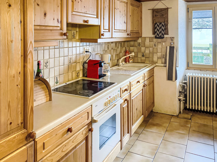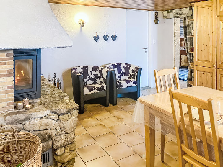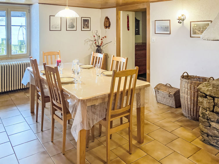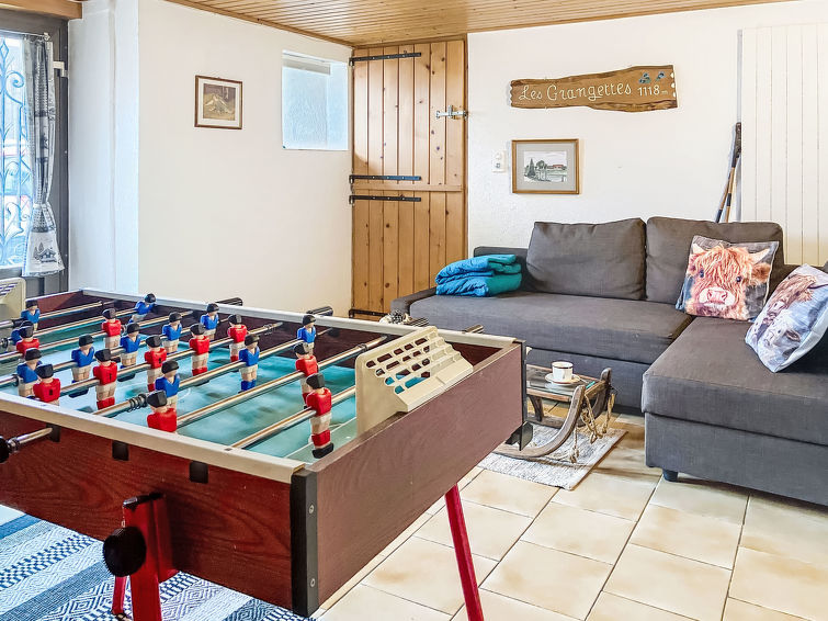 "Les Grangettes", 3 rom leilighet 68 m2, på bakkeplan. Praktiskt og vakkert møbler: stue med, 1 sovesoffa (120 cm, lengde 190 cm), TV, flatskjerms TV og DVD. 1 rom med, 1 dobbeltseng (1 x 160 cm, lengde 190 cm). 1 rom med 2 senger (90 cm lengde 190 cm). Kjøkken/stue (4 kokeplater, stekeovn) med spisebord, åpen peis, spisebord og radio. Dusj/WC. Stor hage. Terrassemøbler, lager. Meget vakker utsikt av fjellene og landskapet. Fasiliteter: vaskemaskin, høy barnestol barneseng for barn opp til 2 år, hårføner, ved (gratis). Internett (trådløs LAN [WLAN], gratis). Parkeringsplass (inngjerdet) ved hbrukt. Vennligst merk: max kjæledyr / hund tillatt 1 kjæledyr / hund tillatt. Egen inngang.